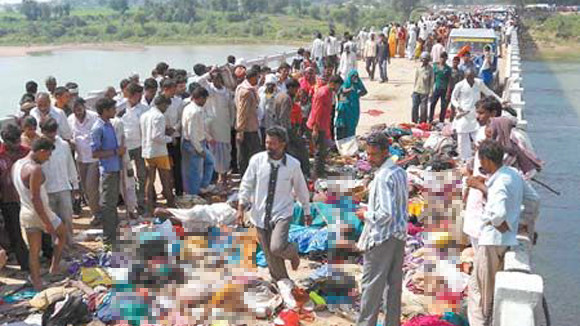 Vụ giẫm đạp kinh hoàng này xảy ra vào ngày 13-10 tại cây cầu ở bên ngoài một ngôi đền thờ của người theo đạo Hindu thuộc quận Datia, cách thủ phủ Bhopal của bang Madhya Pradesh 350 km về phía Bắc. Để chào mừng ngày lễ nữ thần Durga, khoảng 500.000 tín đồ đã hành hương đến đây. Khi có tin đồn cây cầu sắp sập, ít nhất 25.000 người trên cây cầu đã hoảng loạn. Họ chen lấn để nhanh chóng thoát thân, khiến nhiều người thiệt mạng vì bị giẫm đạp, đuối nước do ngã hoặc nhảy xuống sông. Chính quyền bang Madhya Pradesh đã chỉ đạo điều tra vụ việc.