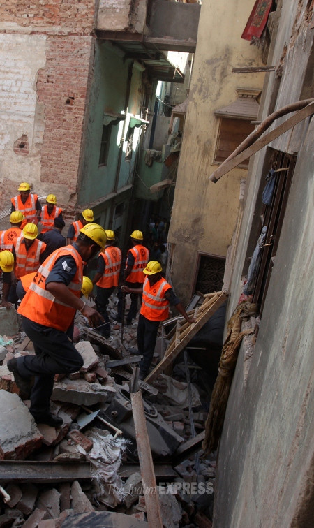 Tòa nhà ba tầng bị sập nằm ở khu vực phía bắc của thành phố, chỉ huy trưởng lực lượng lính cứu hỏa của New Delhi, ông A.K. Sharma cho hay, tòa nhà đã có hơn 50 tuổi. Hai nạn nhân thiệt mạng là ông Nakki (68 tuổi) vaf con trai Bunty (35 tuổi). Cả hai nạn nhân được lực lượng cứu hỏa lôi ra từ đống gạch đá của tòa nhà bị sập. Họ được đưa đi cấp cứu tại bệnh viện Gangaram ở gần đó nhưng không qua khỏi. Cảnh sát cũng cho biết một nạn nhân bị chấn thương cũng đã được chữa trị tại bệnh viện.