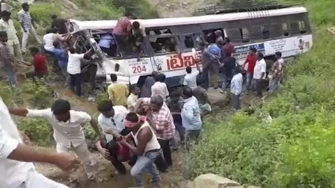 Một viên chức địa phương cho biết, người lái xe mất kiểm soát khi cố gắng tránh một chiếc xe buýt khác trên con đường đông đúc dẫn đầu từ ngôi đền Anjaneya Swamy nổi tiếng ở bang Telangana.