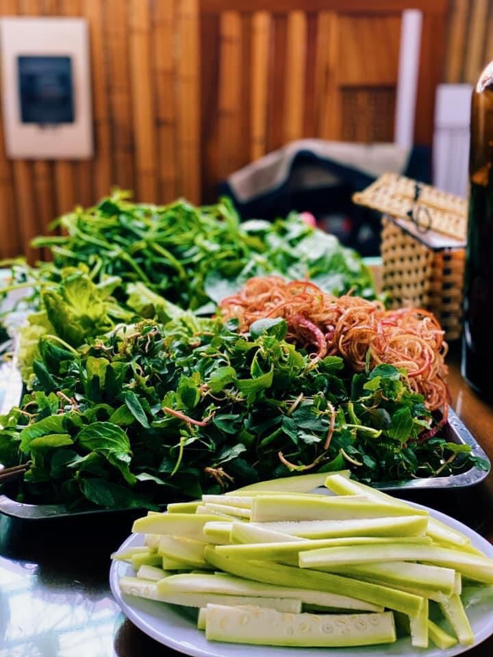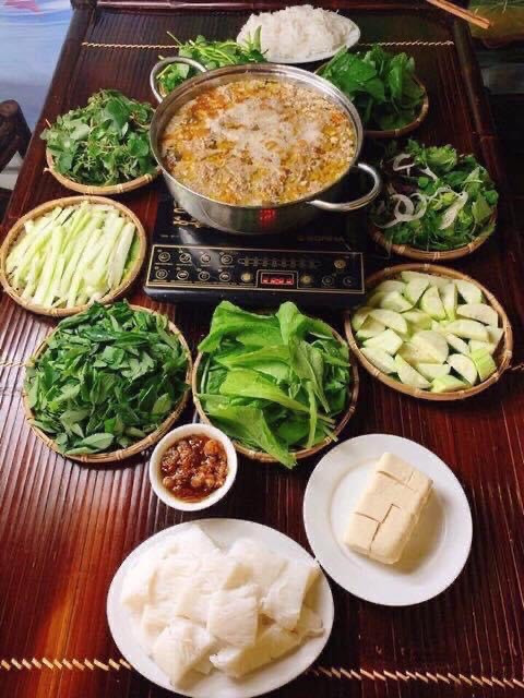 Rau ăn kèm với lẩu ở các nhà hàng này cũng rất được. Một mâm to, toàn rau là rau bưng lên, nhìn qua thấy có rau sống, rau thơm, rau dền cơm, rau mùng tơi, một ít rau muống, một chút rau rút, thêm vào đó còn có một đĩa mướp hương (nếu đúng mùa) hay một đĩa bầu được thái nhỏ, dài. Nói chung, một tốp khách khoảng 5-6 người cứ gọi một nồi lẩu, lẫn rau, lẫn đậu rồi thêm con gà nữa là vừa, đứng lên thanh toán khoảng 1 triệu. Giá cả rất phải chăng, lại được ăn đồ tươi, thơm, sạch. Với những lý do vừa nêu đó, lẩu riêu cua ở Xuân Mai, Hòa Lạc, Thạch Thất… cũng chẳng phải là “bỗng dưng đắt hàng”, cũng là tiếng lành đồn xa cả.