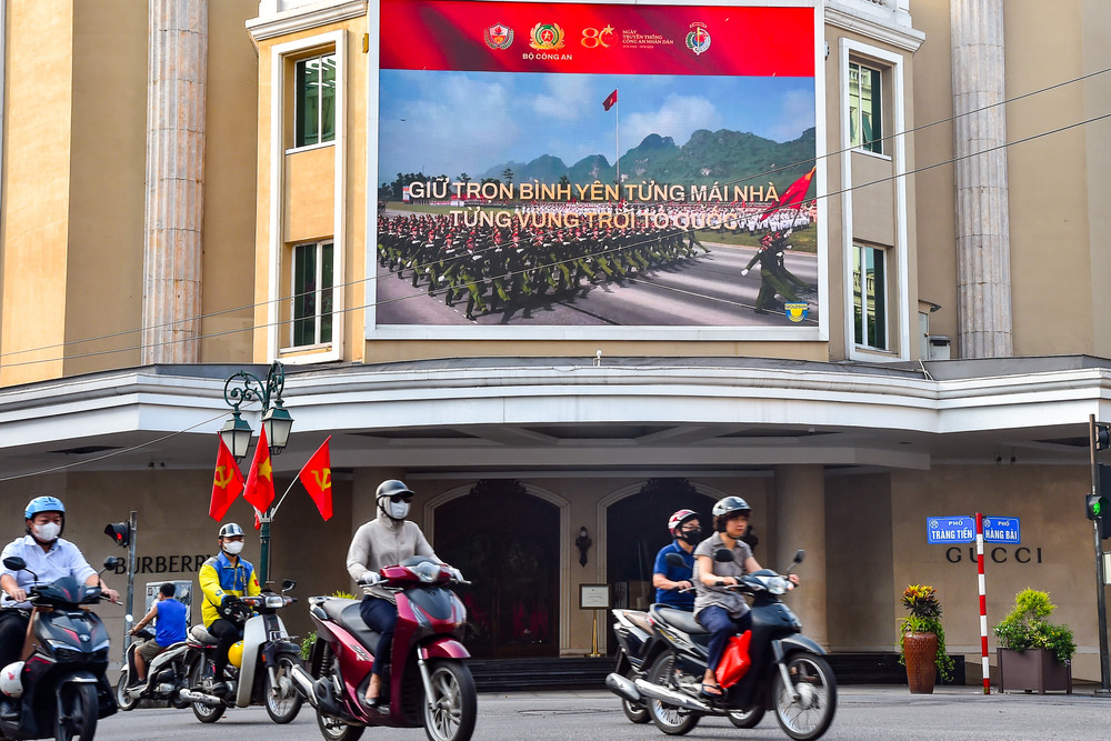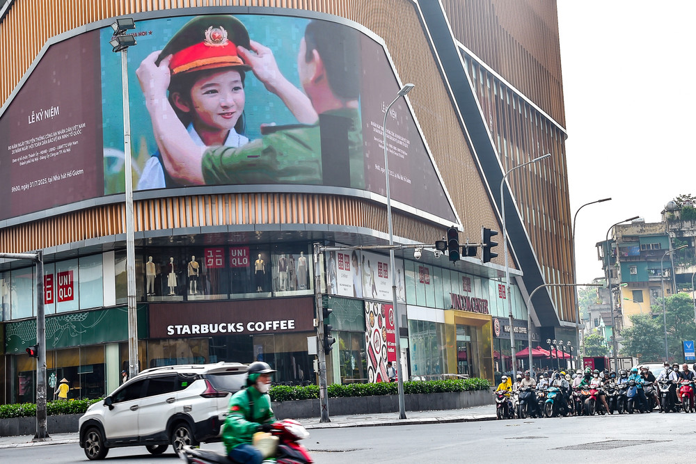 ANTD.VN - Từ mỗi ngã tư ở trung tâm, các màn hình LED lớn đến những nơi đông người, công viên, hình ảnh chào đón kỷ niệm 80 năm Ngày truyền thống lực lượng CAND ở Thủ đô như làm phố phường Hà Nội thêm rực rỡ...