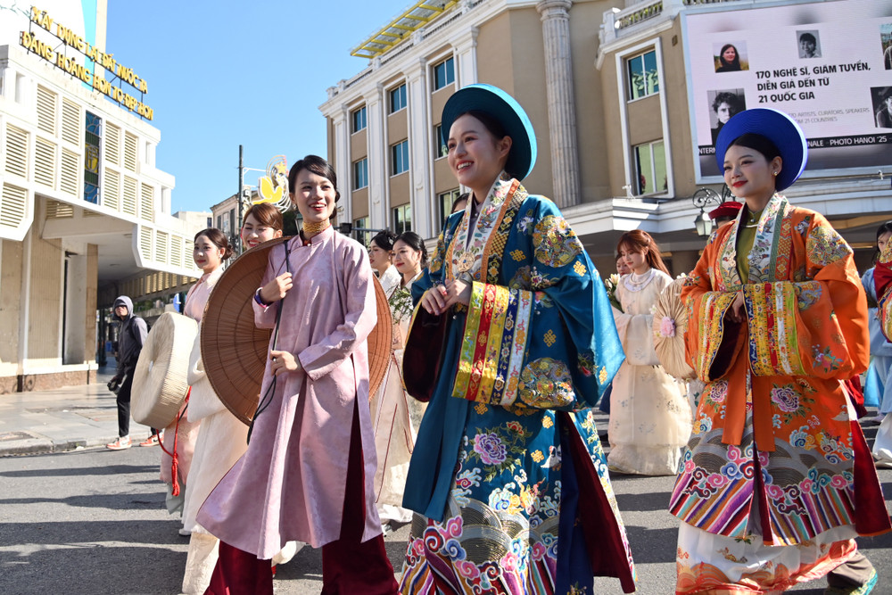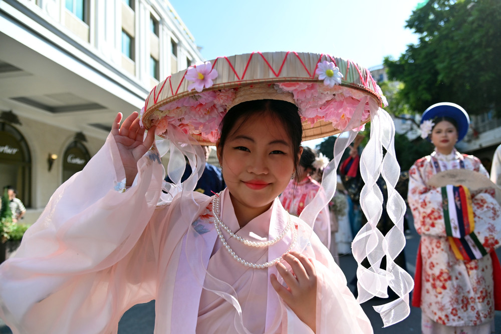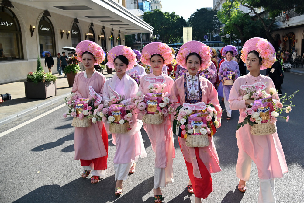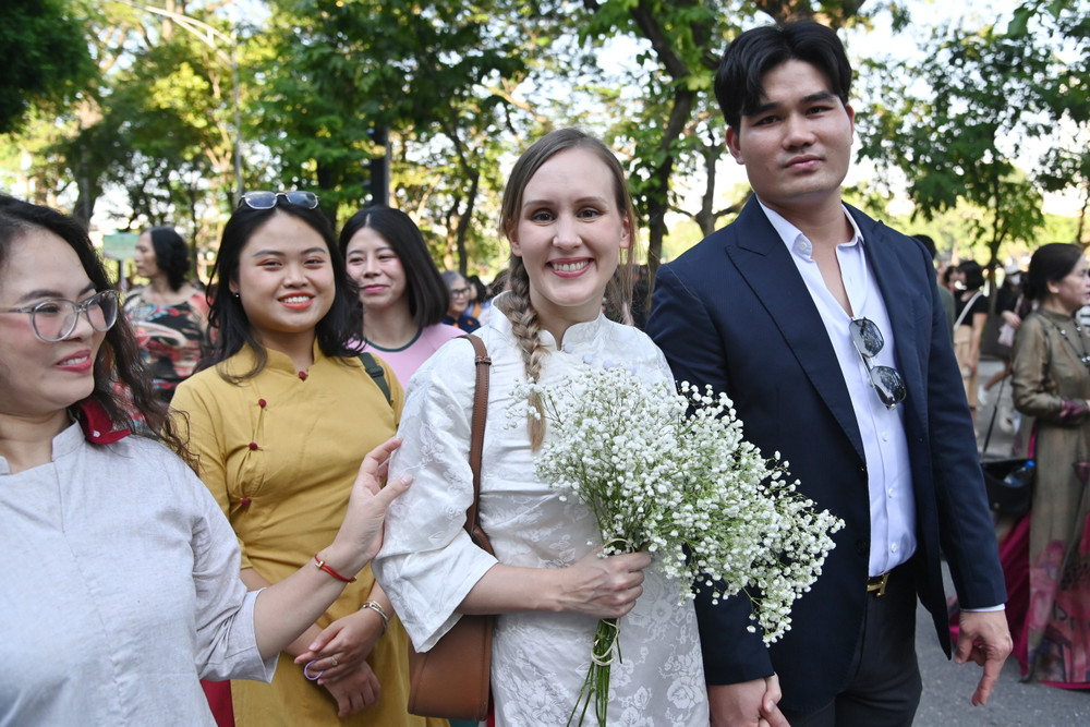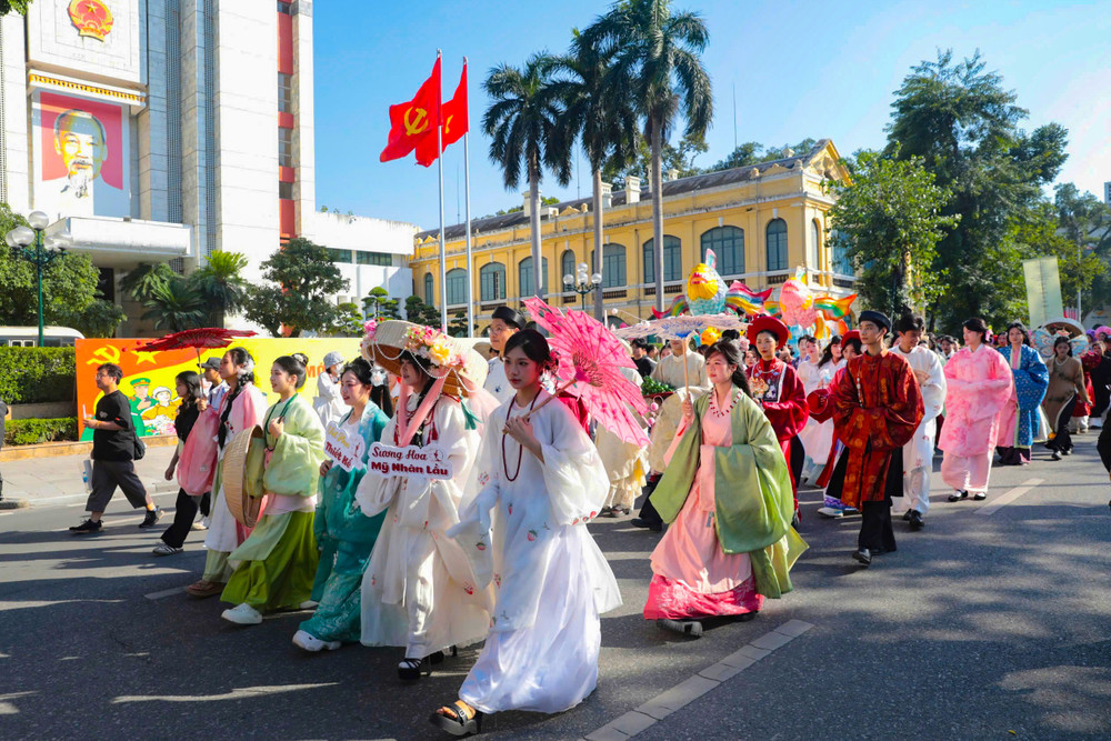 Ấn tượng hình ảnh thiếu nữ trong trang phục Việt "Bách hoa bộ hành" đẹp tuyệt trong nắng Hà Nội