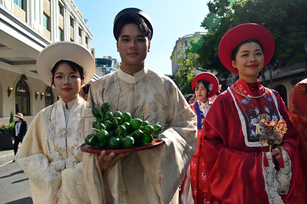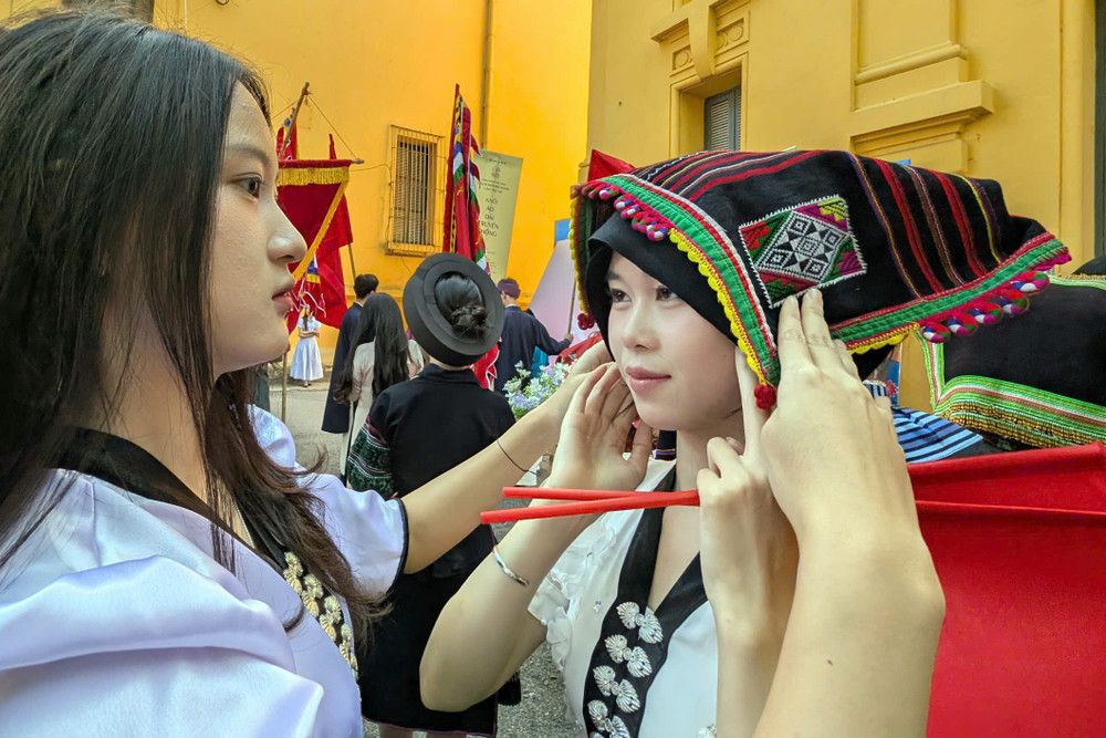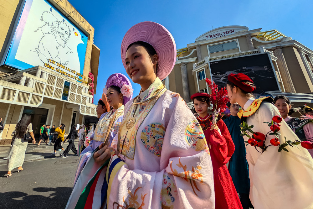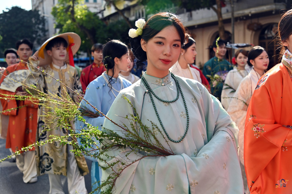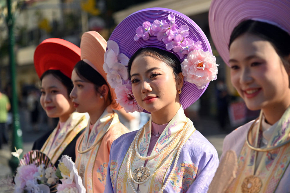 Ấn tượng hình ảnh thiếu nữ trong trang phục Việt "Bách hoa bộ hành" đẹp tuyệt trong nắng Hà Nội