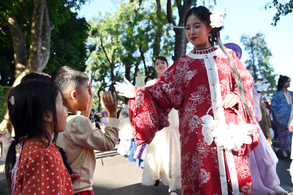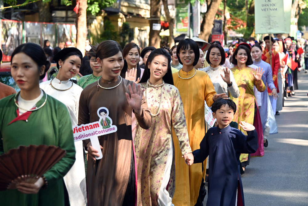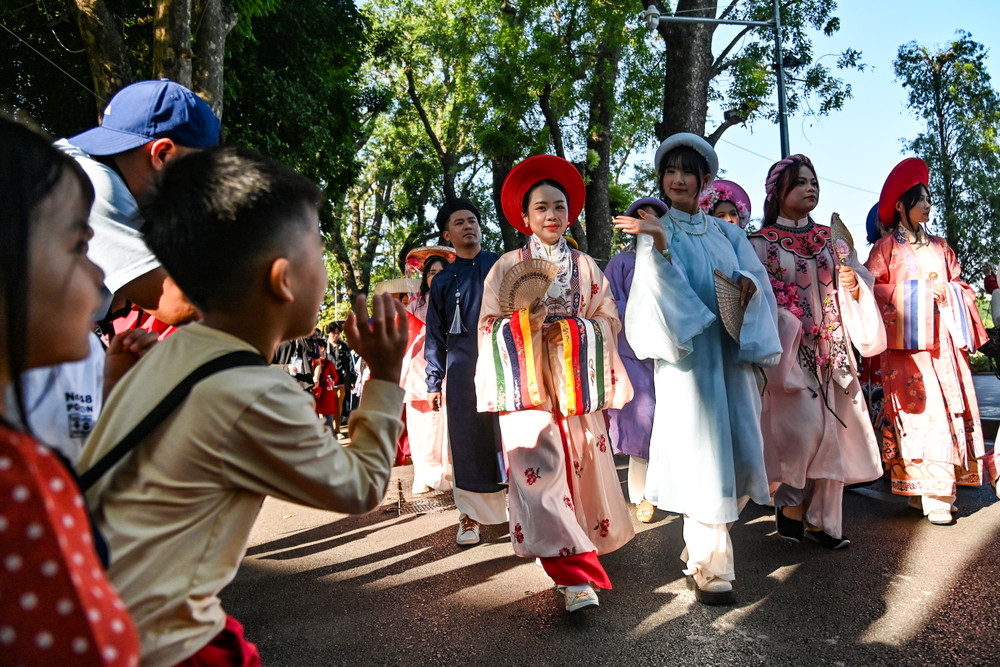 ANTD.VN - Thiếu nữ trong những tà áo dài truyền thống hòa cùng cổ phục uyển chuyển giữa nắng vàng tạo nên hình ảnh rực rỡ, tuyệt đẹp giữa lòng Hà Nội và tôn vinh bản sắc văn hóa của dân tộc.