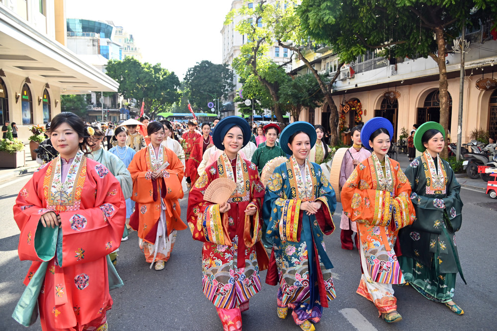 Xem thiếu nữ Hà Nội cưỡi ngựa, mặc cổ phục tuyệt đẹp diễu hành bên hồ Gươm