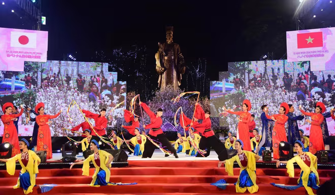 Ngay sau màn ra mắt của 2 vị đại sứ là màn biểu diễn nghệ thuật giàu bản sắc văn hóa, ấn tượng và đẹp mắt chào mừng lễ hội hoa anh đào Nhật Bản-Hà Nội năm 2019, với sự góp mặt của các nghệ sỹ hai nước.
