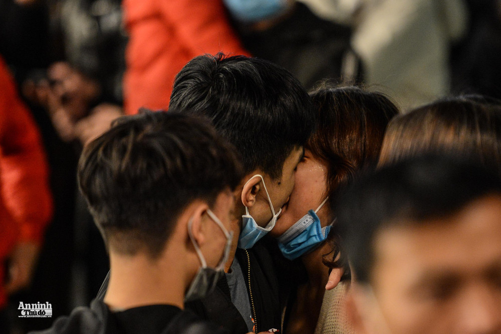 Ấn tượng nụ hôn... với khẩu trang trong thời khắc đón năm 2021 tại Hà Nội