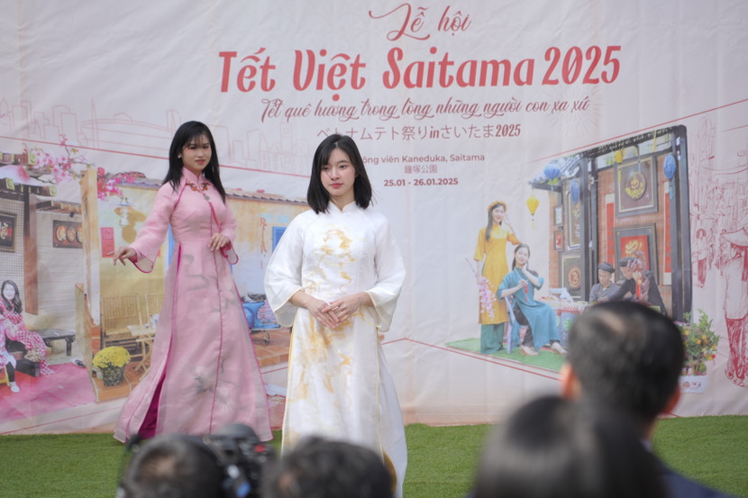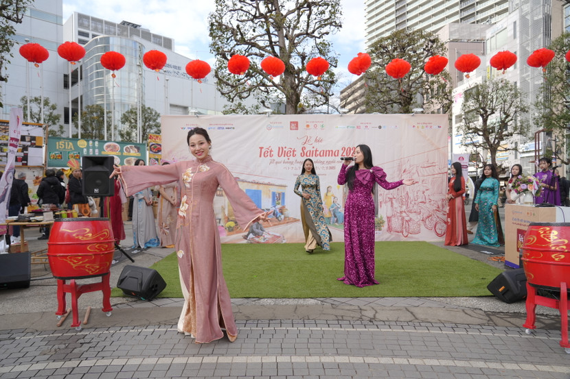 Ngoài phần nghi lễ văn hóa, phong tục, tập quán ngày Tết, khán giả còn được hòa mình vào không gian nghệ thuật đặc sắc, chiêm ngưỡng phần trình diễn áo dài truyền thống dân tộc mang màu sắc cố đô Huế của thương hiệu áo dài Bạch Trà giữa lòng xứ sở hoa anh đào. Bộ sự tập lần này do chính cộng đồng người Việt Nam tại đây trình diễn. Họ không phải là những người mẫu chuyên nghiệp nhưng ở đó là tình yêu với áo dài, là mong muốn quảng bá văn hóa áo dài, phát huy trong việc lưu giữ và bảo tồn trang phục áo dài truyền thống của người Việt Nam nơi xa xứ. Song song đó là các tiết mục ca nhạc mang màu sắc xuân rộn ràng do ca sĩ Bạch Trà đến từ Việt Nam biểu diễn cùng các tiết mục sôi động khác của cộng đồng và lối dẫn ngọt ngào và sâu lắng của MC nhà báo Hạnh An An mang đến một không gian Tết Việt tại Saitama nhiều cảm xúc.