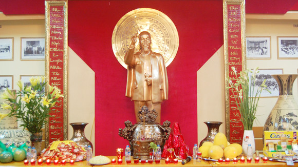 Tượng đồng Chủ tịch Hồ Chí Minh trên do các nghệ nhân ở thị trấn Lâm, huyện Ý Yên, tỉnh Nam Định đúc theo phương pháp truyền thống. Tượng có chiều cao là 2,28m, trọng lượng 995 kg. Việc kính tặng tượng đồng Chủ tịch Hồ Chí Minh của các cựu sinh viên khóa D5 là rất ý nghĩa nhằm bày tỏ lòng biết ơn đối với Chủ tịch Hồ Chí Minh, nhân kỷ niệm 123 năm ngày sinh của Người, đặc biệt đó cũng là sự tri ân đối với mái trường thân yêu, nơi đã đào tạo, huấn luyện để trở thành những chiến sĩ CAND. Đây là hoạt động thiết thực, chuẩn bị cho kỷ niệm 40 ngày tựu trường và 35 năm ngày tốt nghiệp ra trường của khóa D5, Học viện ANND.