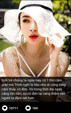 Nội dung câu triết lý của Angela Phương Trinh nói về sự cô đơn của giới trẻ thu hút 10.000 lượt thích.