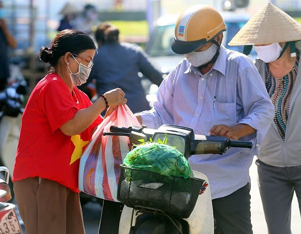 ANTD.VN - Hưởng ứng lời phát động phong trào, từ ngày 7-8, khoảng 1.500 tiểu thương tại các chợ ở TP Đà Nẵng đồng loạt mặc áo cờ đỏ sao vàng, phía sau in dòng chữ "Đà Nẵng ơi cố lên" với mong muốn dịch Covid-19 sớm được khống chế, đẩy lùi, đồng thời cổ vũ người dân, các lực lượng đang nỗ lực làm nhiệm vụ chống dịch Covid-19 tại địa phương này.