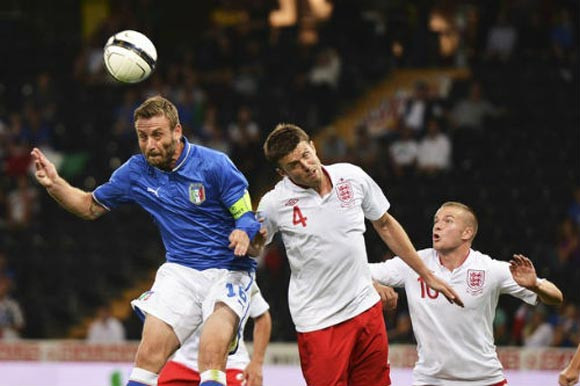 Mặc dù không có nhiều cầu thủ trụ cột trong đội hình xuất phát, nhưng ngay sau tiếng còi khai cuộc, Italia lại là đội bắt nhịp với trận đấu tốt hơn, và ó bàn thắng khai thông thế bế tắc từ khá sớm. Phút thứ 15, xuất phát từ tình huống đá phạt của đồng đội, De Rossi đã bật cao đánh đầu hiểm hóc hạ gục thủ thành trẻ Butland.