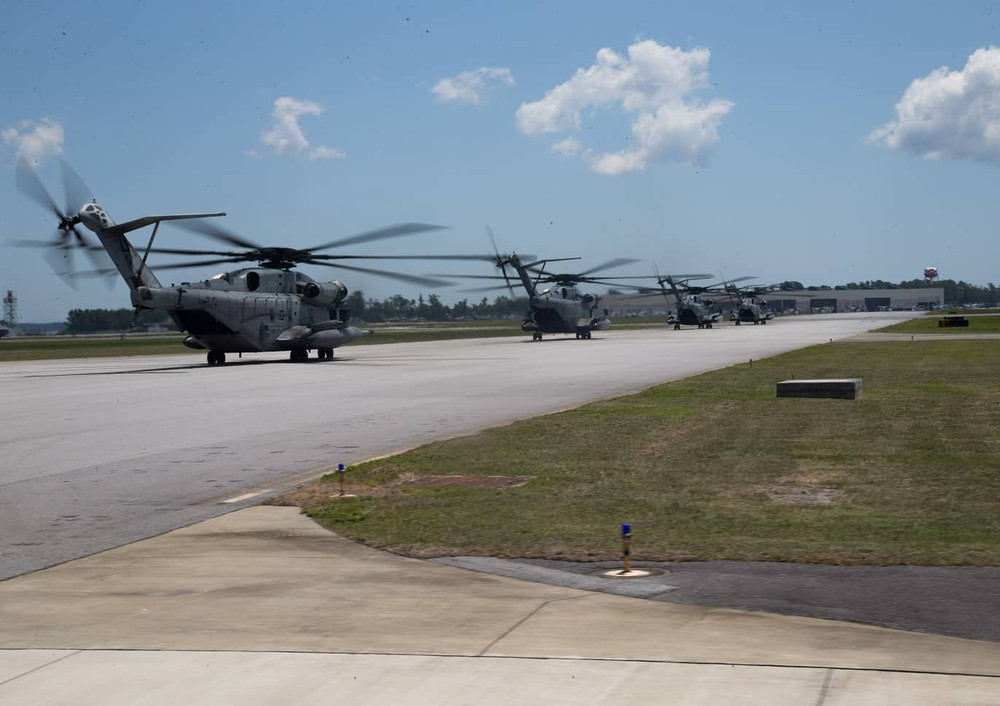 ANTD.VN - Máy bay lên thẳng CH-53E Super Stallions thuộc phi đội huấn luyện trực thăng hạng nặng (HMHT) số 302 của thủy quân lục chiến Mỹ đã thực hiện cuộc diễn tập lớn tại New River, Bắc Carolina.