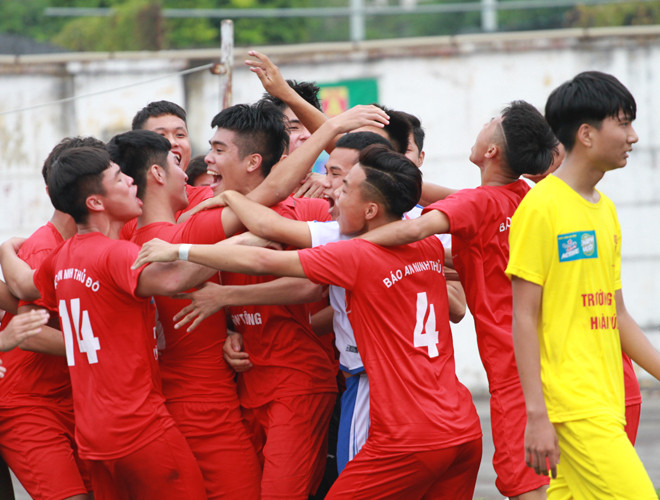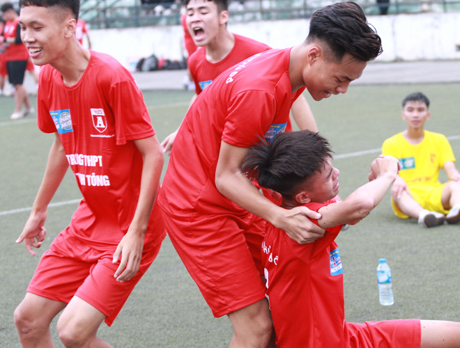 ANTD.VN - Kết thúc loạt luân lưu nghẹt thở, các cầu thủ THPT Lý Thánh Tông ôm chầm lấy nhau khóc nức nở, những giọt nước mắt của hạnh phúc, của sự giải tỏa căng thẳng sau quãng thời gian dài đằng đẵng phải chiến đấu thiếu người trước một THPT Hoài Đức B đầy khát khao.