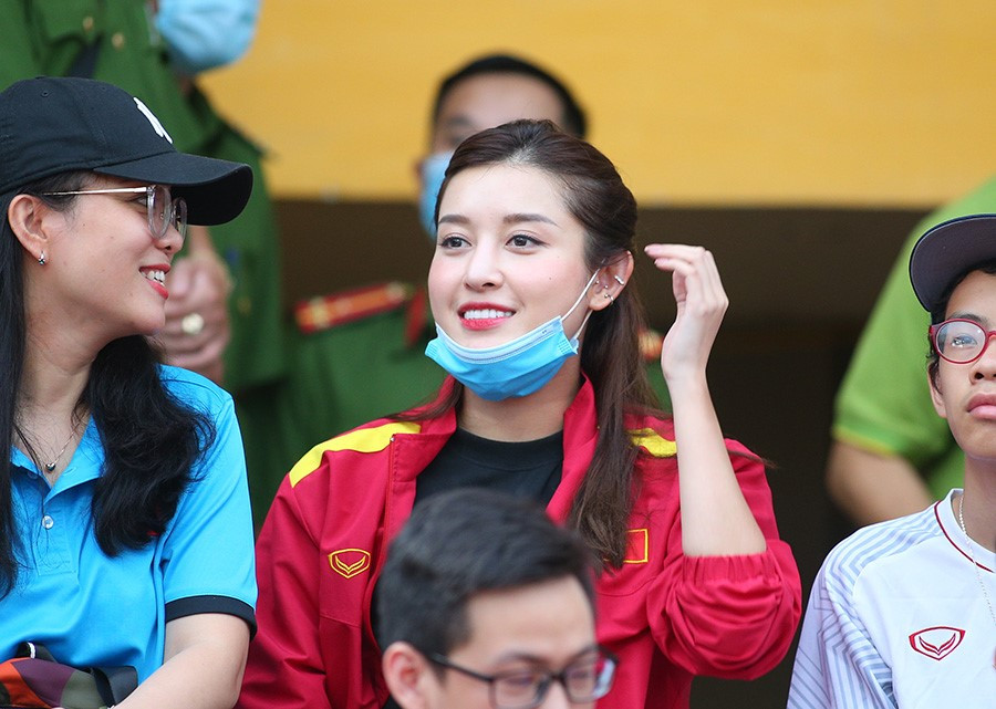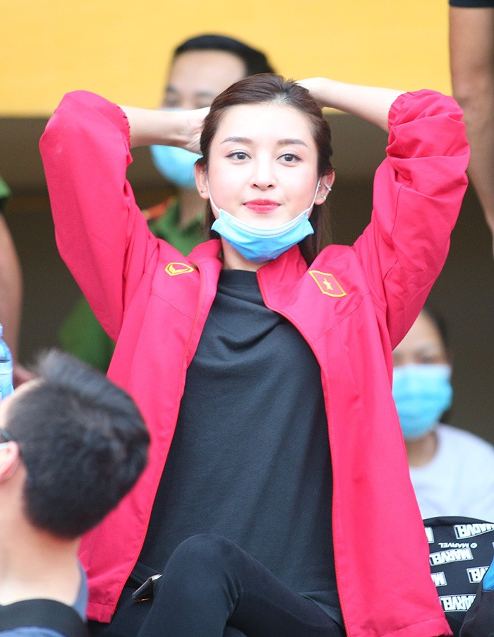 [ẢNH] Á hậu Huyền My đến sân cổ vũ "hậu duệ Thể Công" ở chung kết cúp Quốc gia