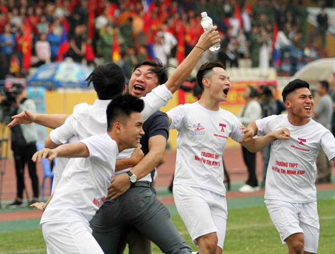 ANTD.VN - Trong một trận đấu căng thẳng, kịch tính đến nghẹt thở, Á quân THPT Nguyễn Thị Minh Khai đã chơi cực kỳ chặt chẽ, tập trung cao độ và tận dụng triệt để sai lầm hiếm hoi của đương kim vô địch THPT Trần Quốc Tuấn trên chấm luân lưu để soán ngôi vô địch Giải bóng đá học sinh THPT Hà Nội - Báo An ninh Thủ đô lần thứ XVII 2017 - Cúp Number 1 Active.