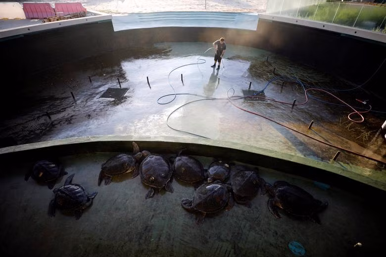 ANTD.VN - Theo Quỹ Động vật hoang dã thế giới, rùa xanh là loài hiếm đang đứng trước nguy cơ bị tuyệt chủng do nạn săn bắt và ô nhiễm môi trường biển. Nhận thức được điều này, Trung tâm bảo tồn rùa Israel đã nuôi dưỡng loài rùa này, sau đó thả ra môi trường tự nhiên.