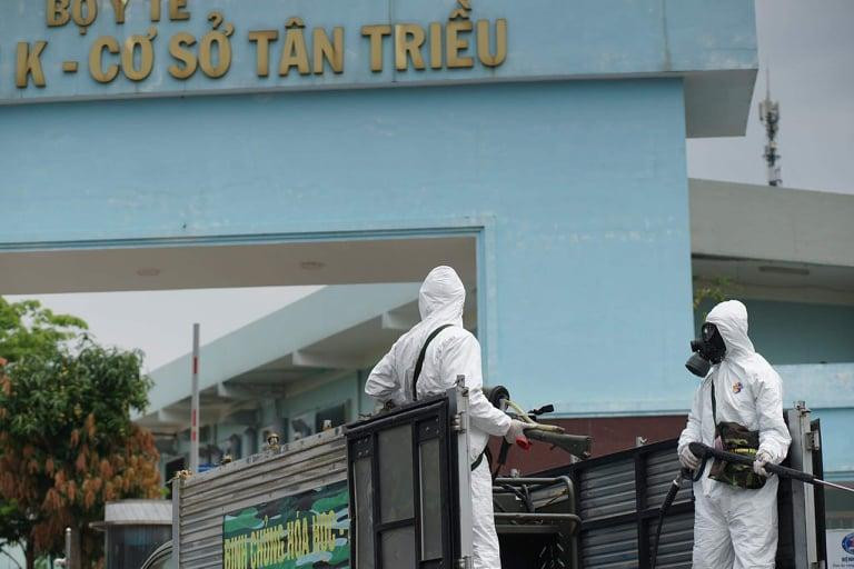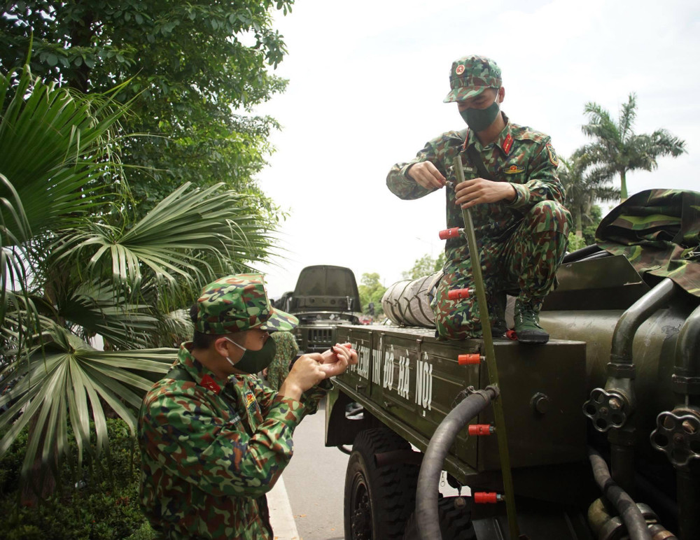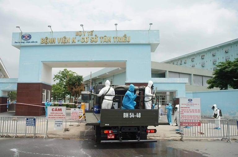 [Ảnh] Bộ Tư lệnh Thủ đô phun khử khuẩn Bệnh viện K cơ sở Tân Triều phòng Covid-19
