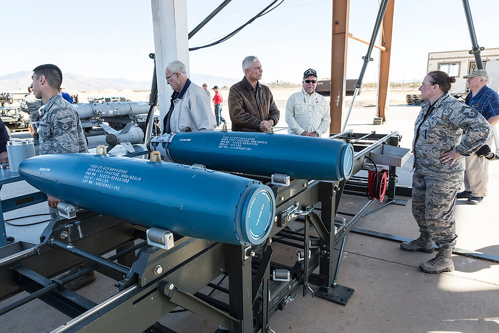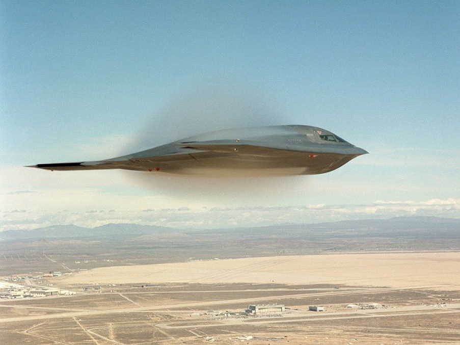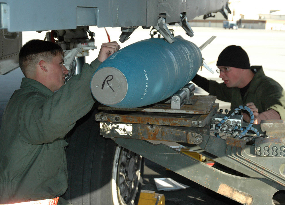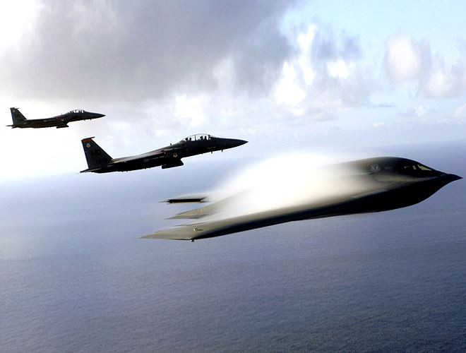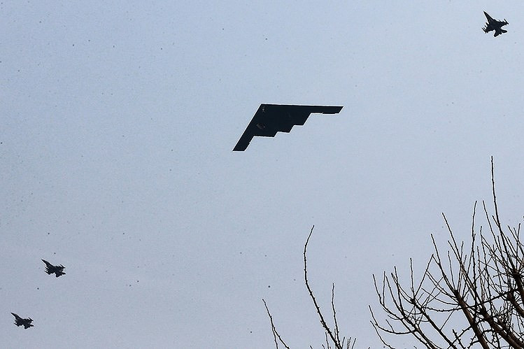 ANTD.VN - Máy bay tàng hình B-2 Mỹ hôm 3-8 diễn tập không kích mục tiêu ở thao trường Kansas City bằng 5 quả bom huấn luyện BDU-50.