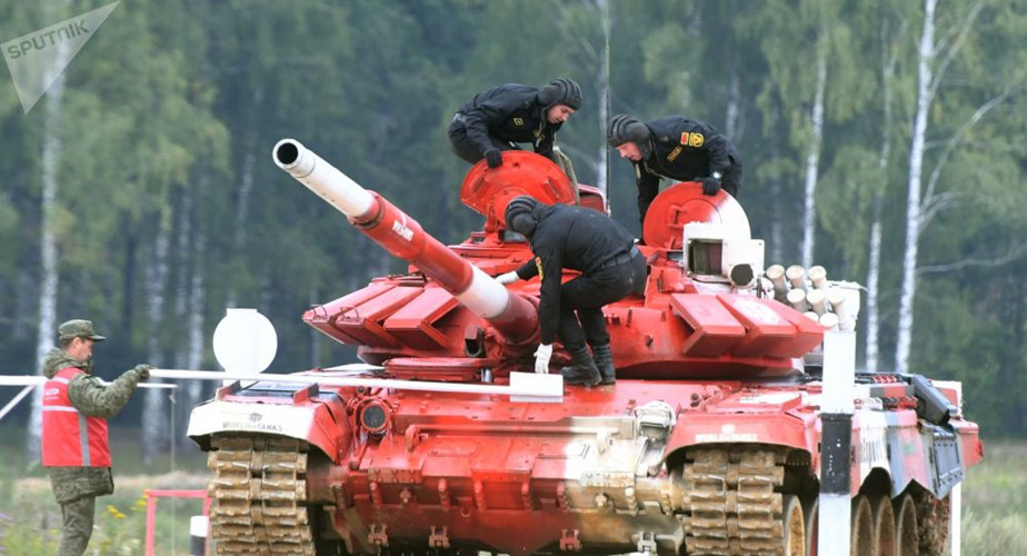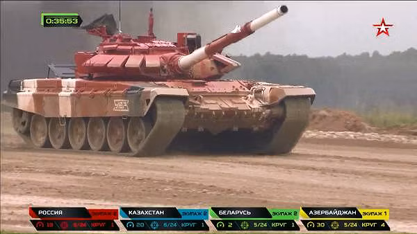 [ẢNH] Bức tốc với 83km/h, Nga bị nghi ngờ độ động cơ khủng cho tăng T-72B3 dự thi