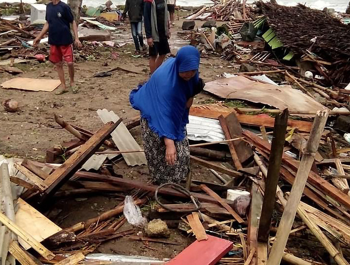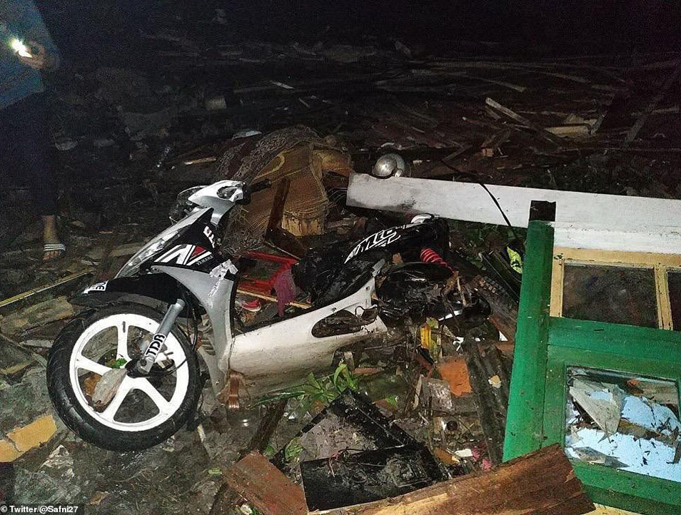 [Ảnh] Cận cảnh hiện trường tan hoang do sóng thần tấn công ở Indonesia