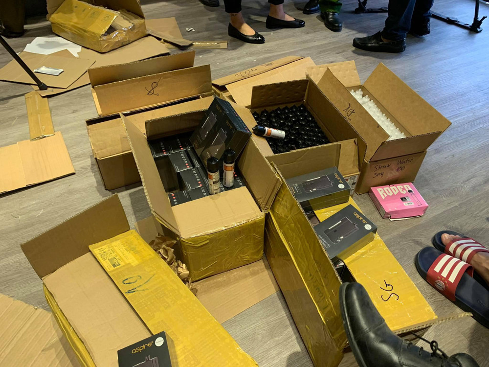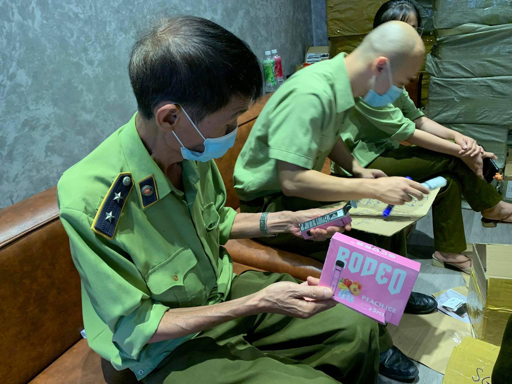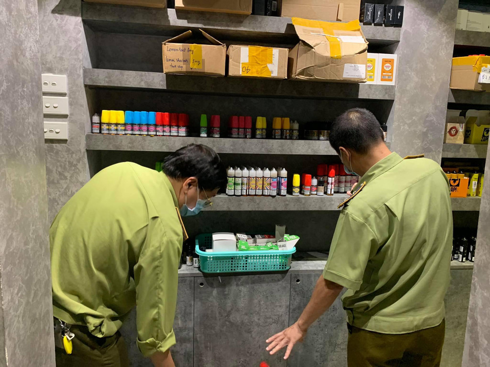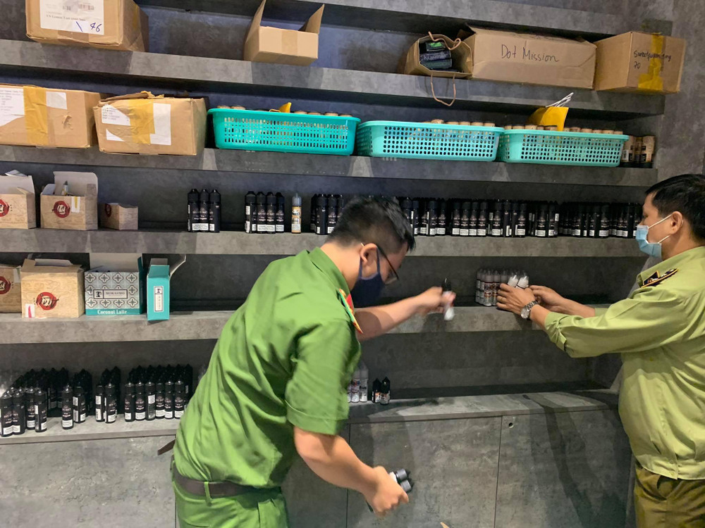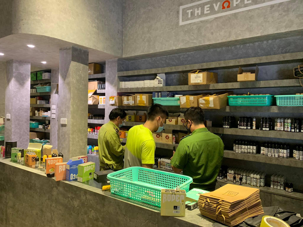 ANTD.VN - Chiều nay (2-6), Phòng Cảnh sát kinh tế Công an thành phố Hà Nội phối hợp với Đội Quản lý thị trường (QLTT) số 14 - Cục QLTT Hà Nội bất ngờ kiểm tra một cơ sở kinh doanh thuốc lá điện tử, tinh dầu thuốc lá điện tử không rõ nguồn gốc xuất xứ.