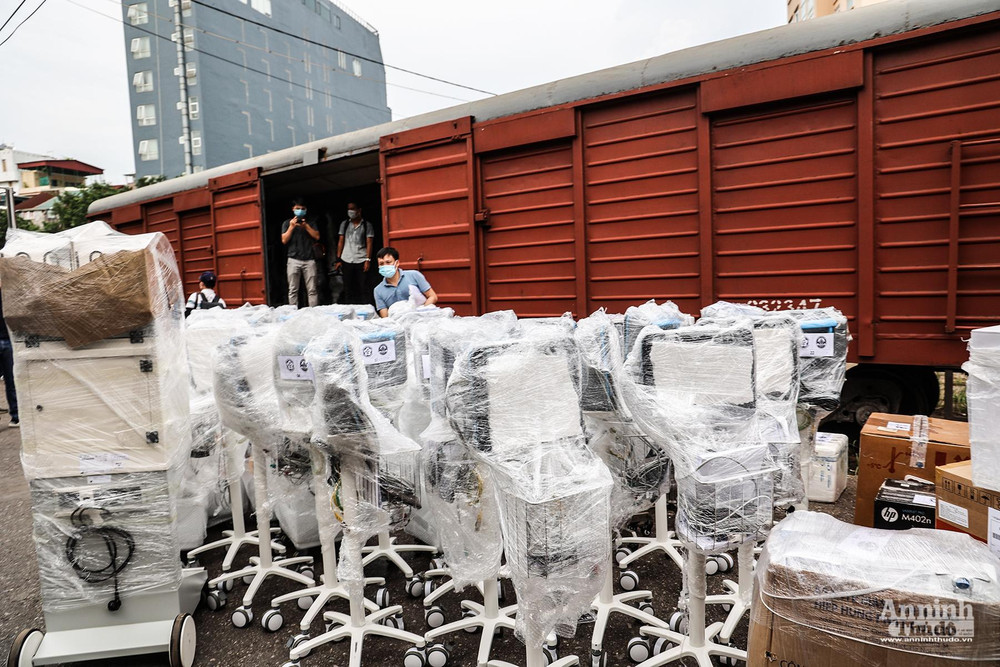 ANTD.VN - Chiểu nay (31/7), tại Hà Nội, Bệnh viện Bạch Mai đã bắt đầu vận chuyển bằng đường sắt nhiều thiết bị y tế, trong đó có nhiều máy thở hiện đại để chi viện cho TP HCM phòng chống dịch Covid-19.