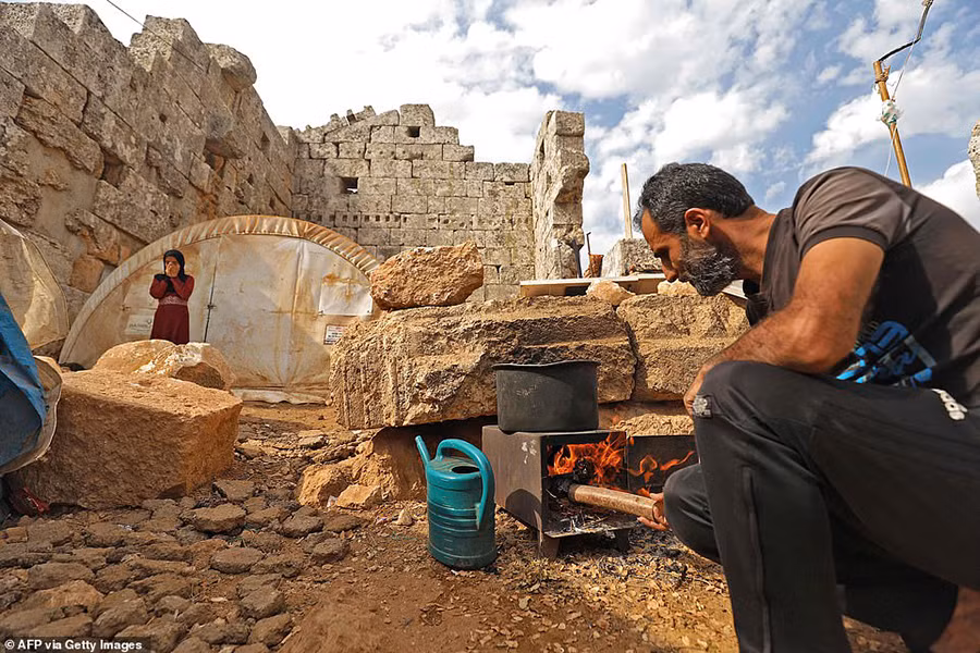 ANTD.VN - Một số gia đình người tị nạn Syria đã chọn cách dựng lều sống tạm giữa các tàn tích của văn hóa La Mã và Byzantine ở khu vực Baqirha, không xa biên giới Thổ Nhĩ Kỳ sau khi bị buộc phải tha hương vì cuộc xung đột kéo dài suốt 9 năm qua.