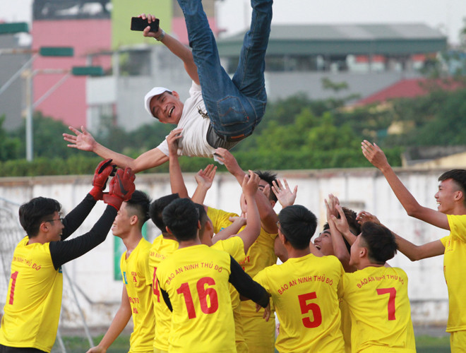 [ẢNH] Cầu thủ THPT Đống Đa công kênh HLV sau chiến thắng nghẹt thở