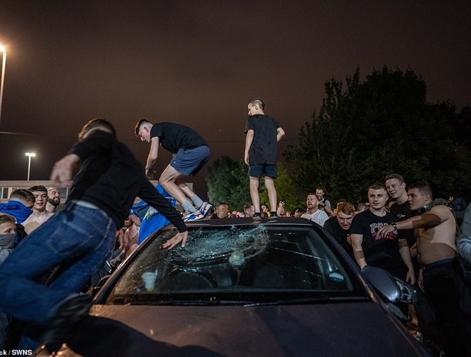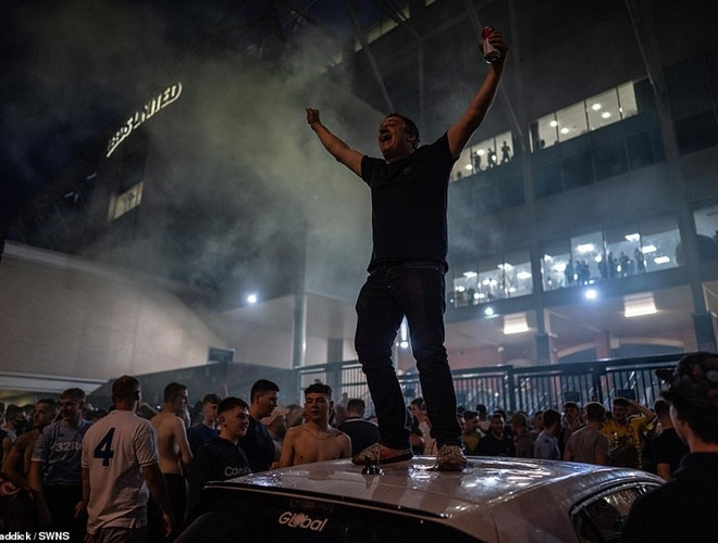 [ẢNH] CĐV ăn mừng điên cuồng, đập phá ô tô khi Leeds United lên hạng