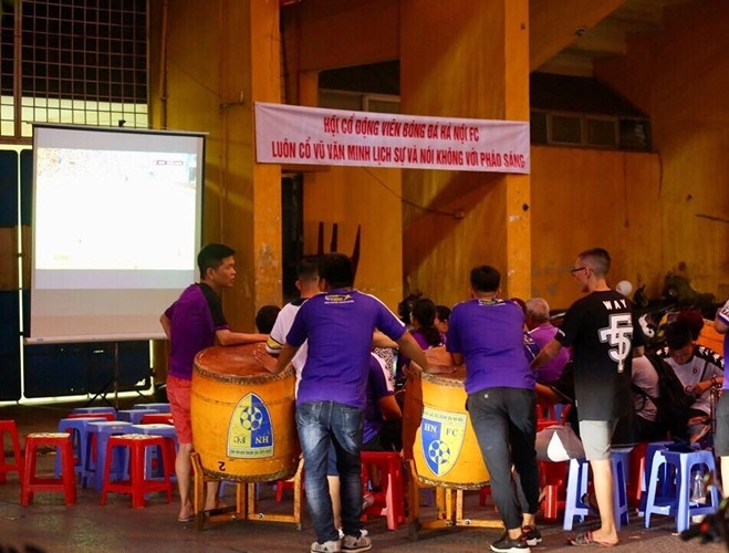 ANTD.VN - Không được vào sân cổ vũ đội nhà gặp Viettel ở vòng 23 V-League 2019, các CĐV Hà Nội FC buộc phải "chữa cháy" bằng một màn hình bên ngoài sân Hàng Đẫy.