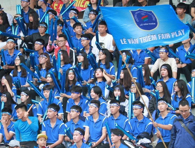 [ẢNH] CĐV Lê Văn Thiêm máu lửa phủ xanh khán đài sân Tây Hồ