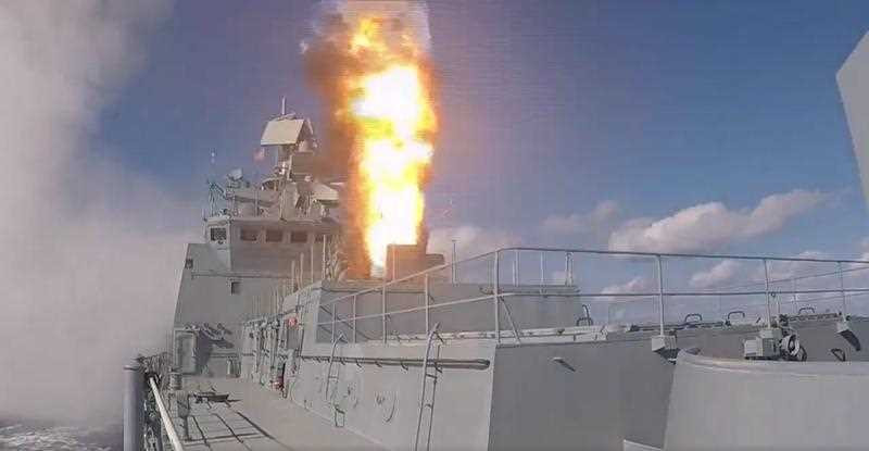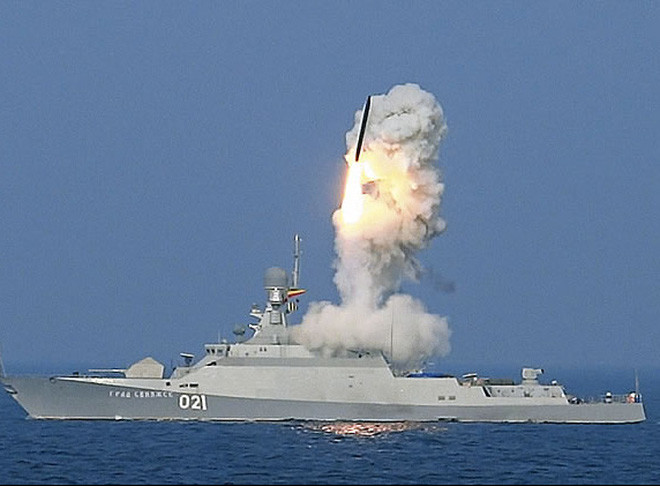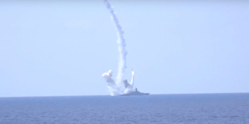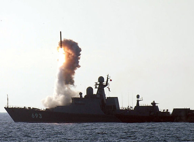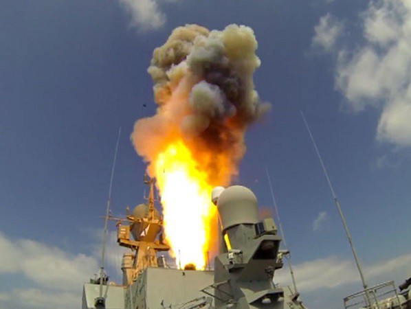 [ẢNH] Chiến hạm Nga dội mưa tên lửa hành trình Kalibr vào thành phố Aleppo