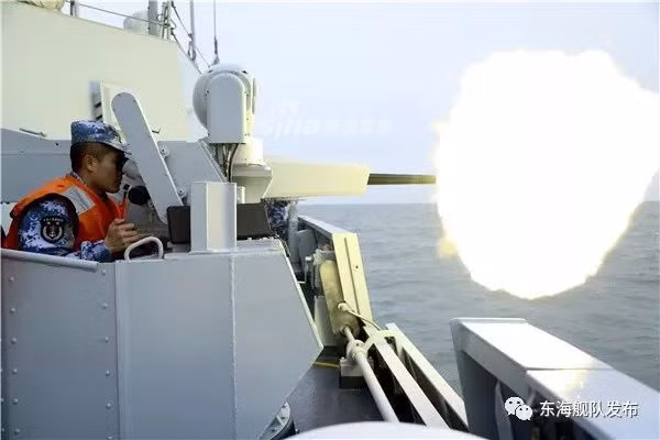 [ẢNH] Chiến hạm Trung Quốc huấn luyện bắn đạn thật trong thời tiết xấu