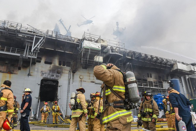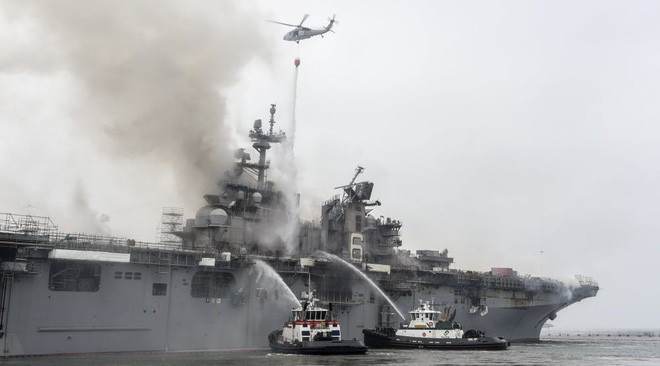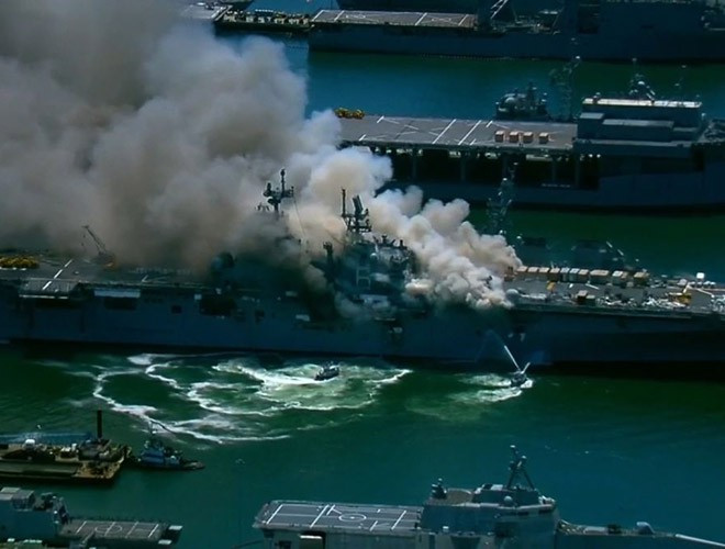 ANTD.VN - Tàu đổ bộ USS Bonhomme Richard có thể mang theo máy bay F-35B đã bị tàn phá nặng nề bởi vụ hỏa hoạn, giới quan sát lo ngại có thể Mỹ sẽ phải loại biêu siêu hạm này.