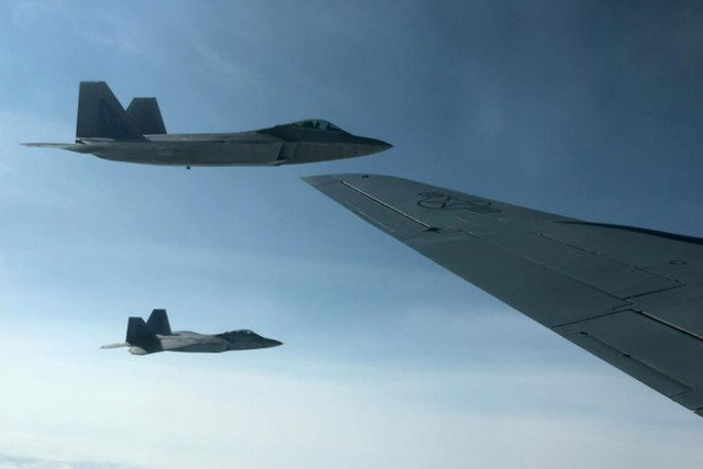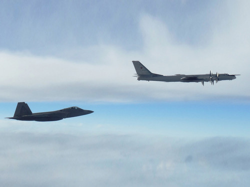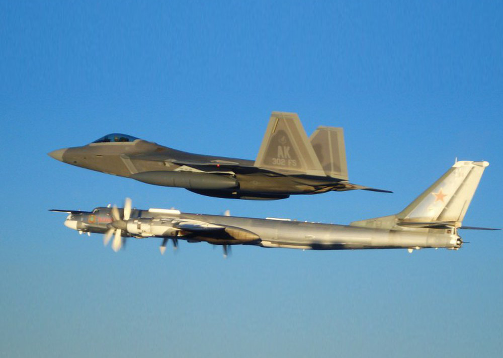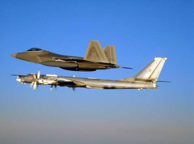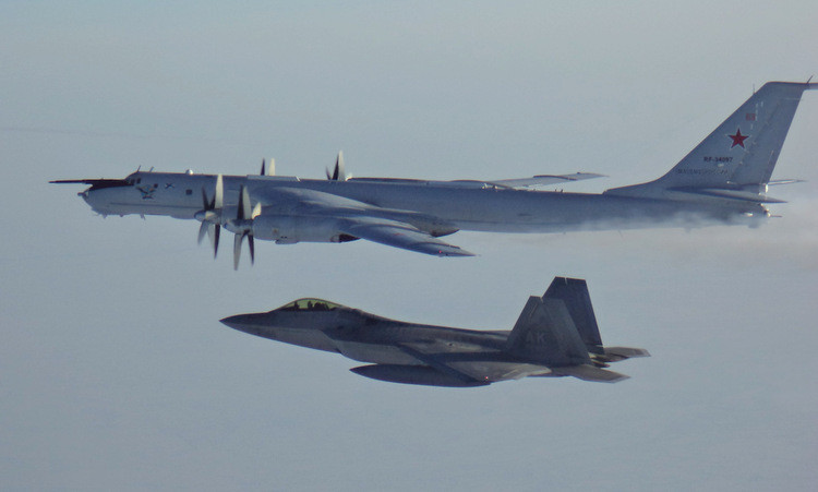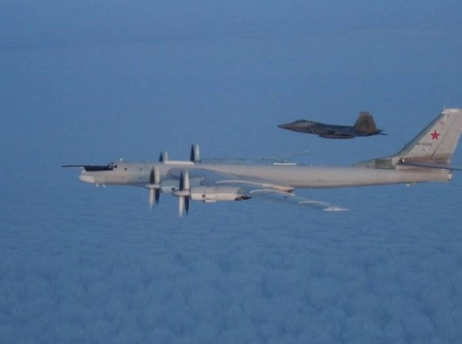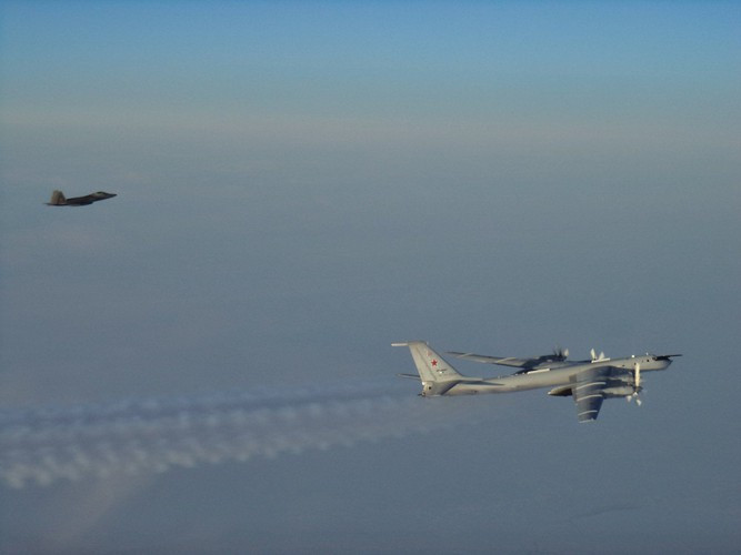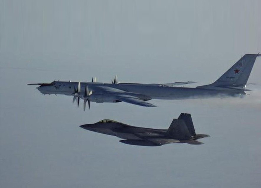 [ẢNH] "Chim ăn thịt" F-22 Mỹ áp sát "gấu bay khổng lồ" Tu-142 Nga