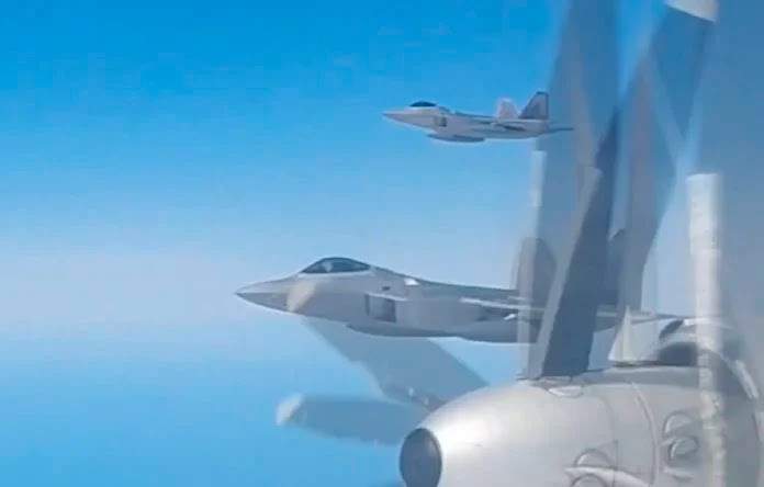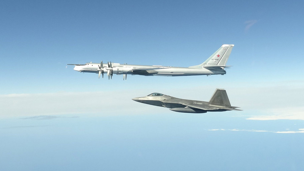 ANTD.VN -  Hai tiêm kích tàng hình F-22 Raptor biệt danh "Chim ăn thịt" của Mỹ được triển khai để giám sát biên đội oanh tạc cơ Tu-95MS Nga hoạt động ở vùng trời Bắc Băng Dương và Viễn Đông.