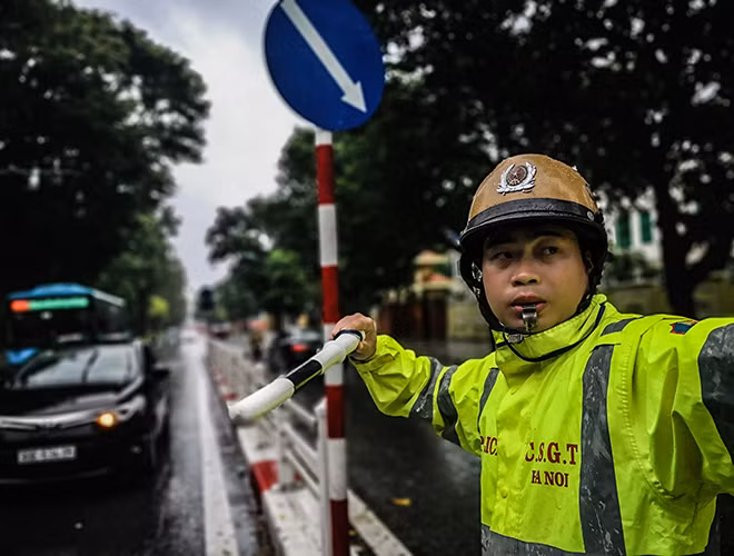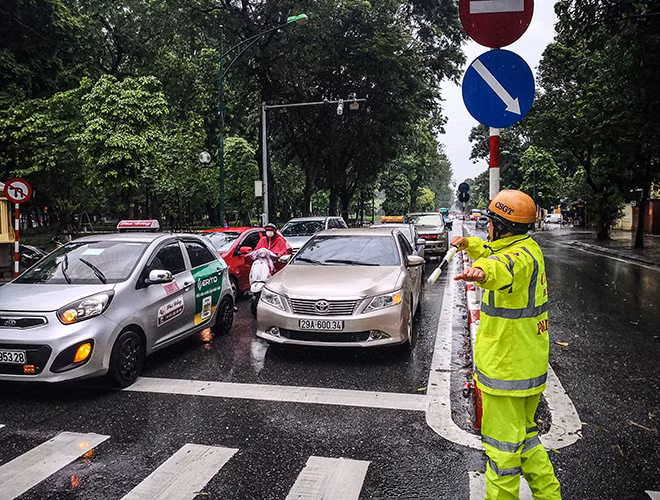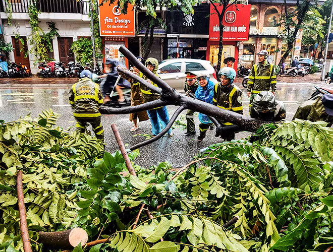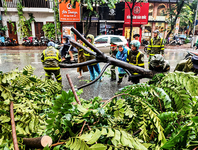 [ẢNH] Công an Hà Nội căng mình khắc phục hậu quả mưa bão
