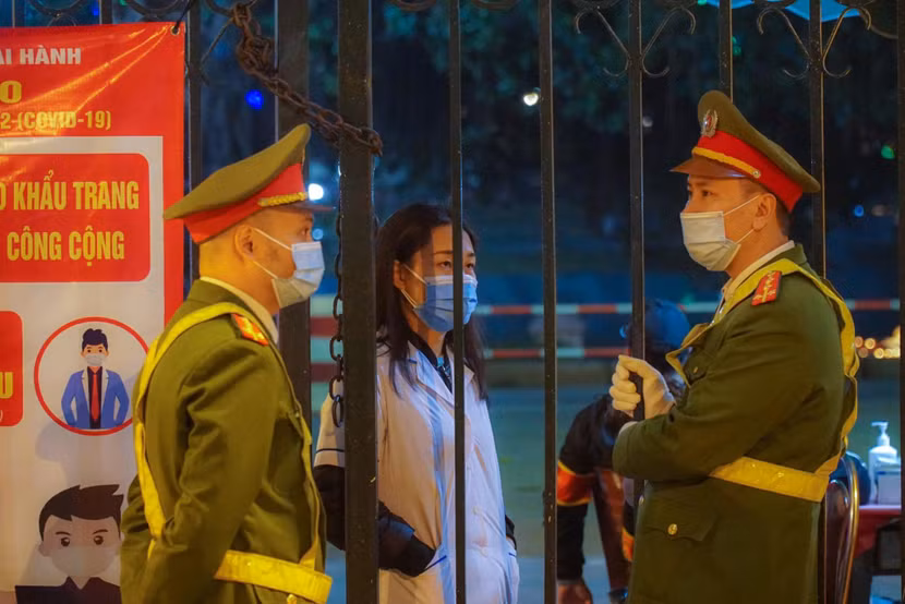 | Tại cổng Công viên thống nhất, các chốt được tăng cường lực lượng |