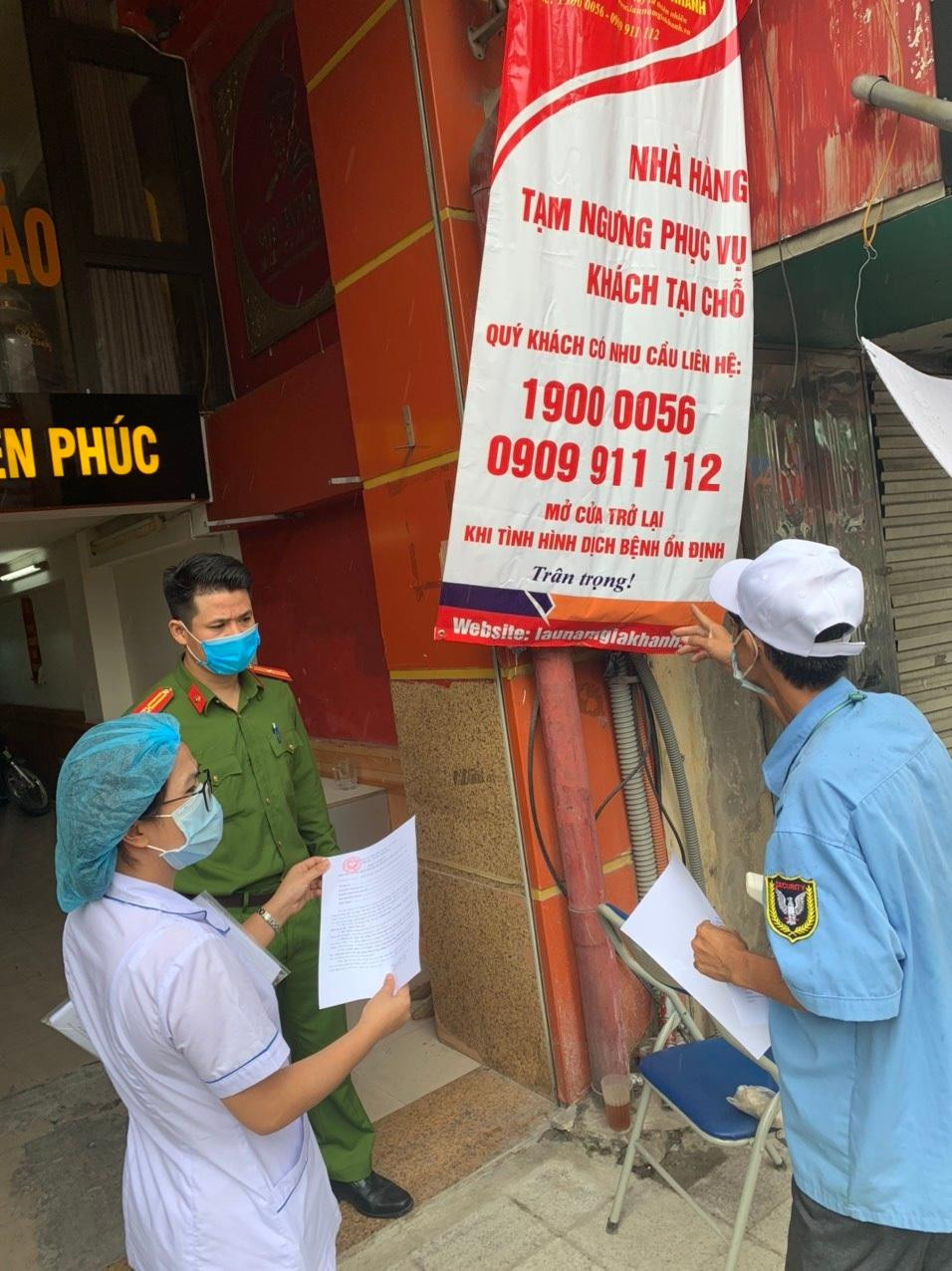 ANTD.VN - Thực hiện Công điện khẩn số 11 của UBND thành phố Hà Nội yêu cầu từ 12h ngày 25-5: tạm dừng hoạt động nhà hàng, cơ sở dịch vụ ăn, uống tại chỗ (chỉ cho phép bán hàng mang về), không tổ chức ăn uống, liên hoan tập trung đông người; các cửa hàng cắt tóc, gội đầu... Công an các quận, huyện trên địa bàn đã phối hợp với các đơn vị chức năng tuyên truyền, vận động người dân chấp hành.