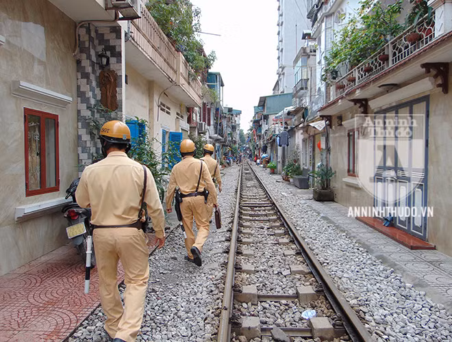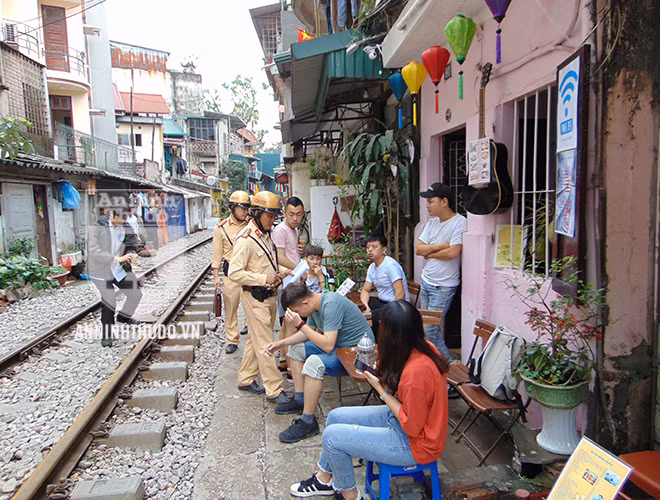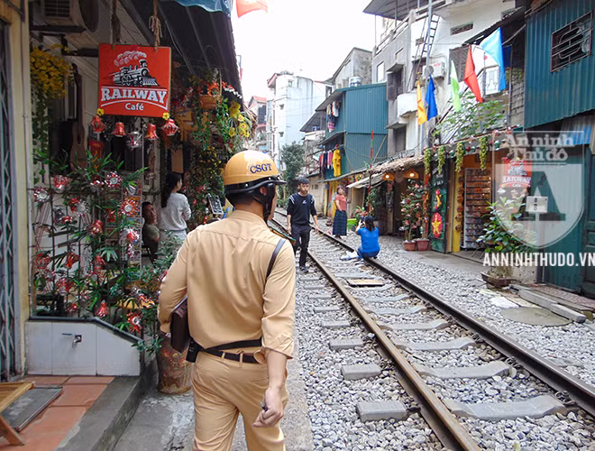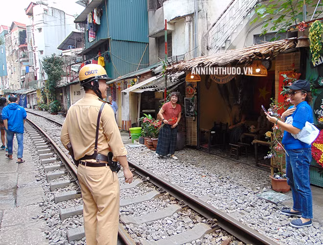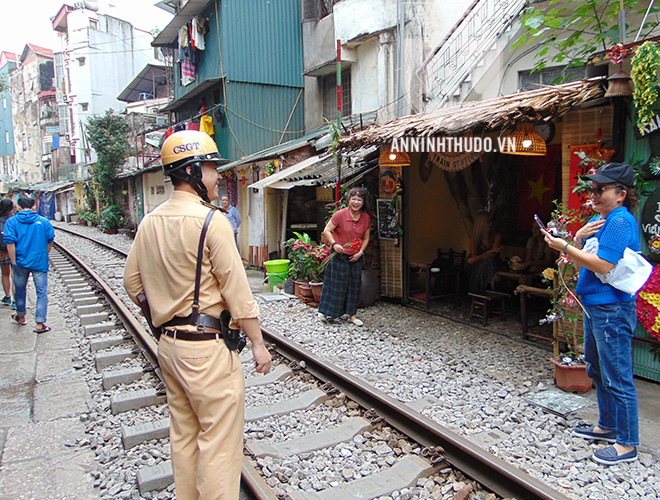 ANTD.VN - Từ lâu, "xóm cà phê đường tàu" đã là một điểm đến quen thuộc của khách du lịch quốc tế, cũng như của nhiều bạn trẻ thích thay đổi không khí. Bên cạnh đó, với tâm lý chủ quan, cho rằng "đã nắm rõ lịch chạy của tàu hằng ngày", không ít hộ dân, hộ kinh doanh ven đường sắt đã ngang nhiên lấn chiếm, vi phạm hành lang an toàn giao thông đường sắt. Để đảm bảo người dân và khách du lịch có ý thức chấp hành luật giao thông, Đội CSGT Đường sắt (Phòng CSGT, CATP Hà Nội) đã liên tục tuần tra, tuyên truyền và đề nghị người dân sống ven đường sắt ký cam kết không vi phạm. Điểm sáng tạo của lực lượng làm nhiệm vụ là khích lệ, động viên người dân để mỗi người trở thành một tuyên truyền viên tích cực, nhắc nhở khách du lịch không chụp ảnh trên đường ray, tiềm ẩn rất nhiều nguy cơ.