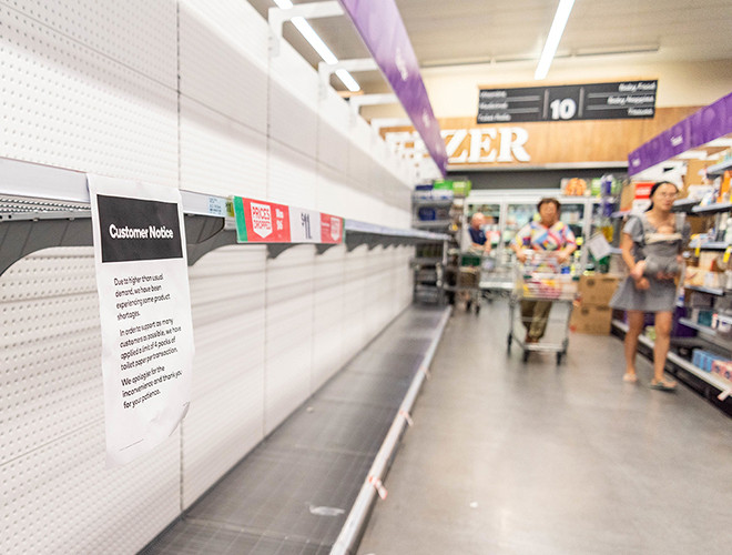 ANTD.VN - Cụ bà ở thành phố Melbourne nhìn chằm chằm vào kệ siêu thị trống trơn rồi bật khóc sau khi hàng hóa đã bị vơ vét giữa khủng hoảng Covid-19.