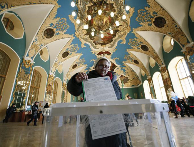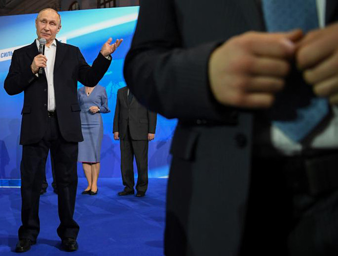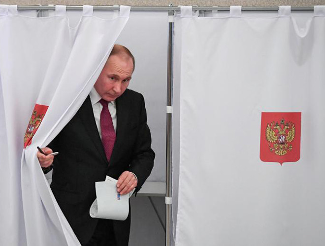 ANTD.VN - Chiếc ghế Tổng thống Nga nhiệm kỳ 2018-2024 gần như đã có chủ, khi trong 90,02% số phiếu đã được kiểm, Tổng thống đương nhiệm Vladimir Putin dẫn đầu với 76,41% số phiếu giành được. Mời độc giả cùng xem những hình ảnh về cuộc bầu cử tổng thống này, qua lăng kính báo chí phương Tây.