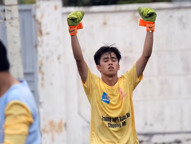 ANTD.VN - Nhiều cầu thủ THPT Xuân Mai (Chương Mỹ) đã đổ gục sau cú sút hỏng ăn của vị đội trưởng, thế nhưng một lần nữa "thủ môn bất đắc dĩ" Nguyễn Phương Lâm đã sắm vai người dùng giúp đội nhà ngược dòng ở loạt luân lưu.