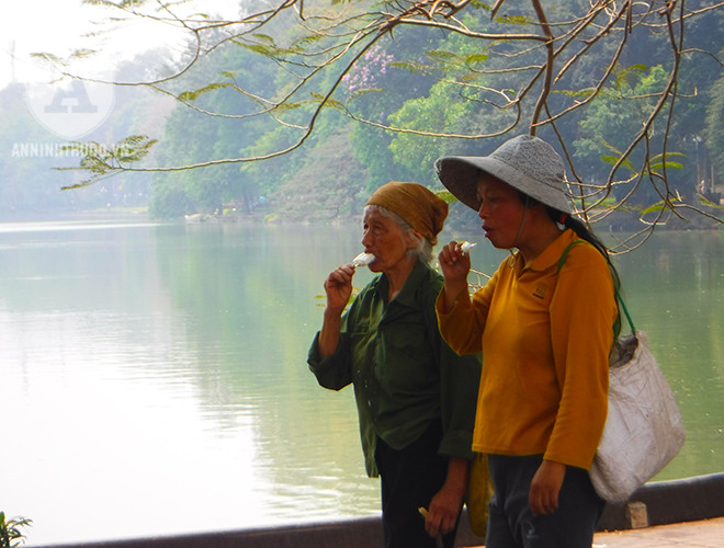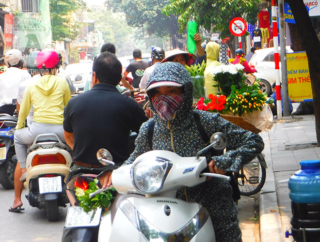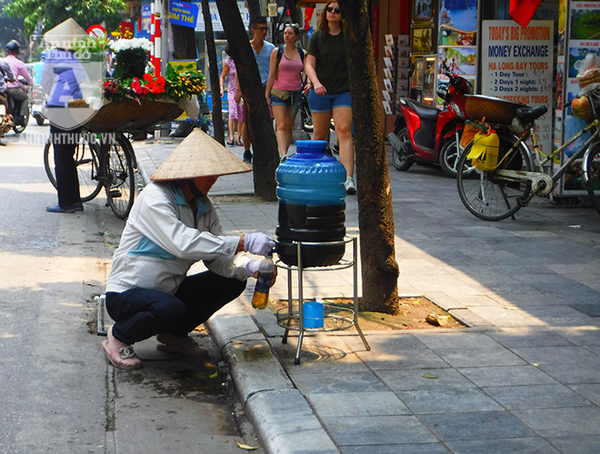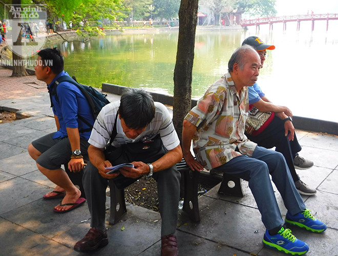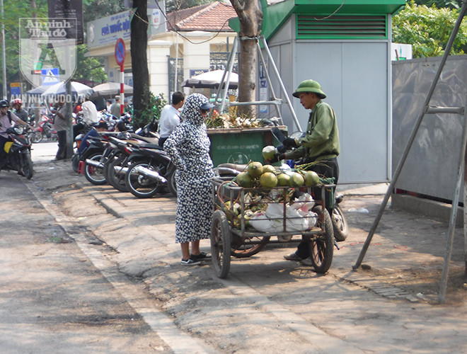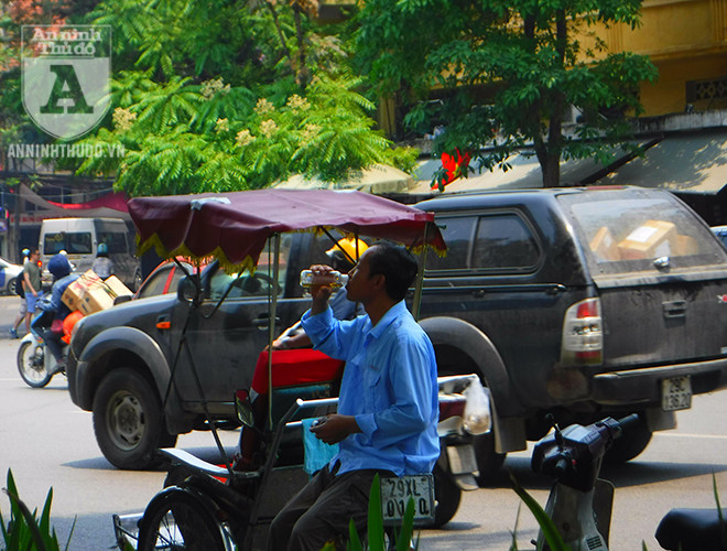 ANTD.VN - Do ảnh hưởng của đợt sóng nhiệt đới cao đang di chuyển từ phía Tây Lào sang phía Đông, nên từ ngày 19 đến ngày 21-4, nền nhiệt ở Hà Nội rất cao, dao động từ 35-37 độ C, có khi lên tới 41 độ C. Để đảm bảo sức khỏe trong cái nóng gay gắt này, người dân đã dùng mọi biện pháp như, mặc áo chống nắng, đeo kím râm, đội mũ, dùng quạt nan, uống nước giải khát,...
