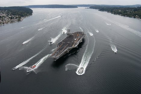 ANTD.VN - USS Carl Vinson đã trở thành một trong những chiếc tàu sân bay nổi tiếng nhất của Mỹ bởi đây chính là nơi tiến hành nghi thức thủy táng trùm khủng bố Osama Binladen ngày 2-5-2011.