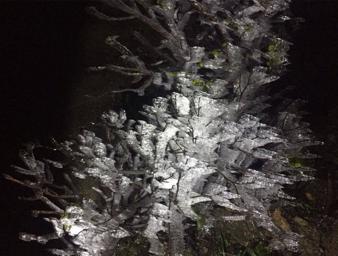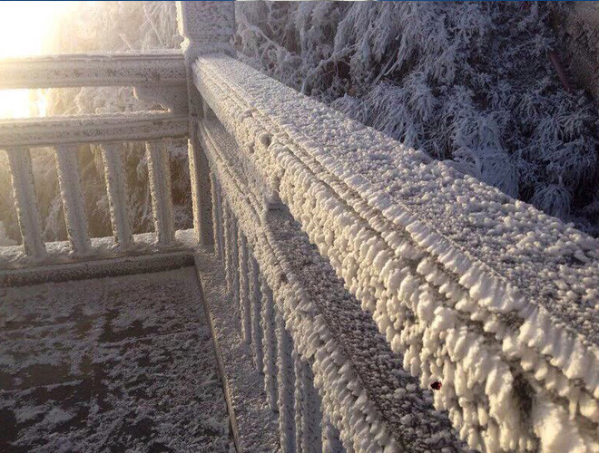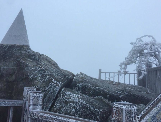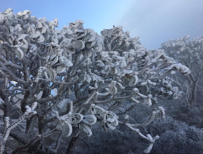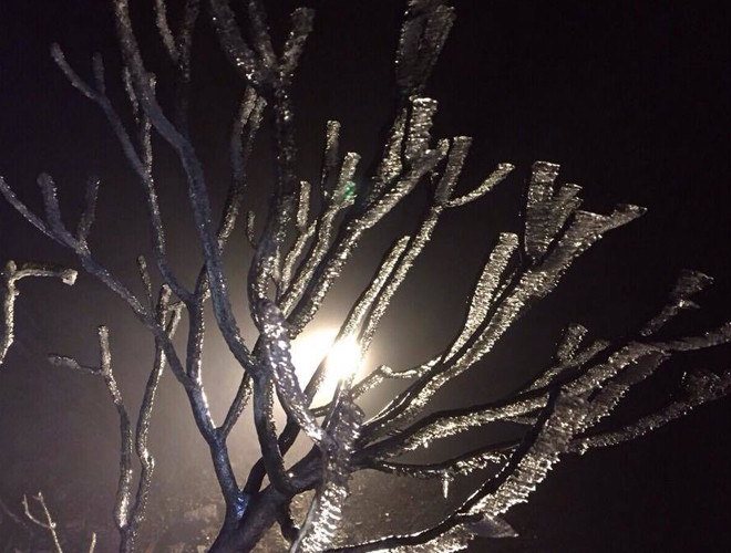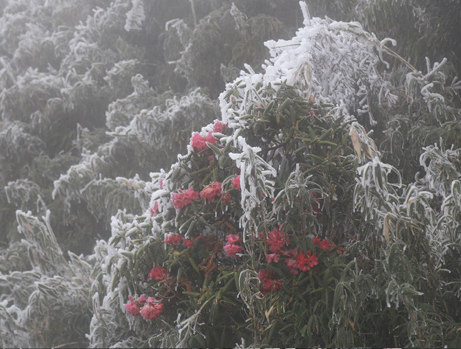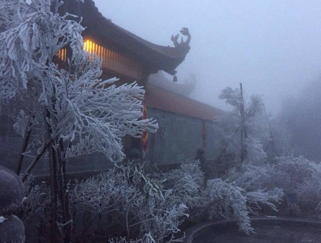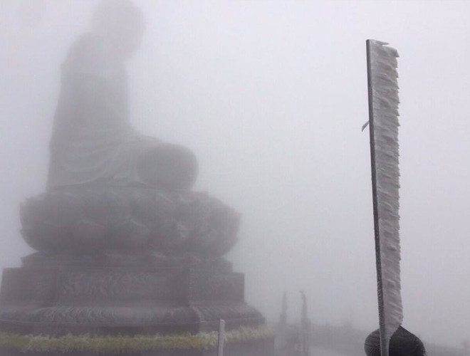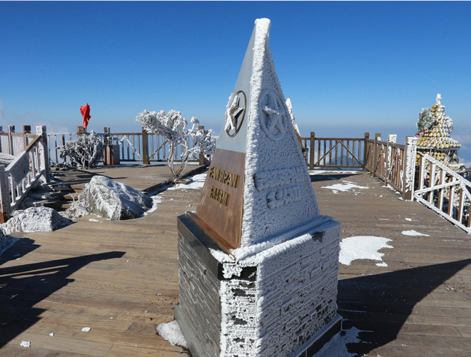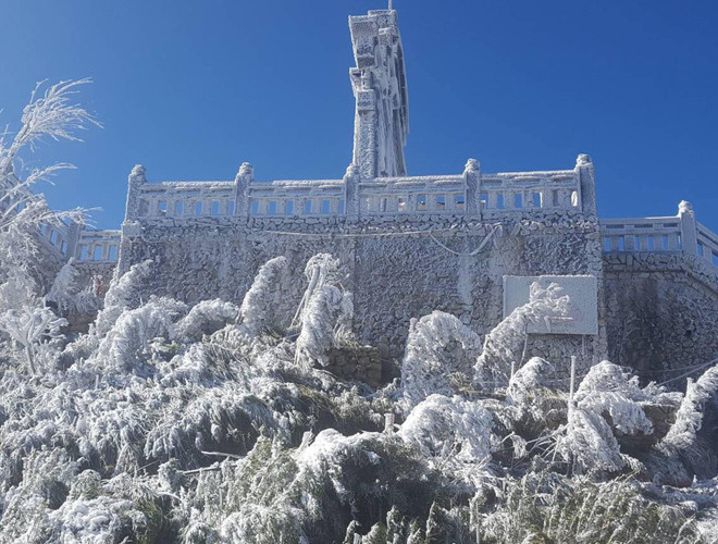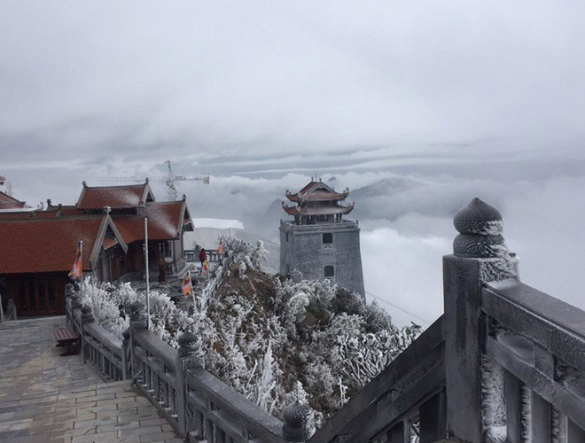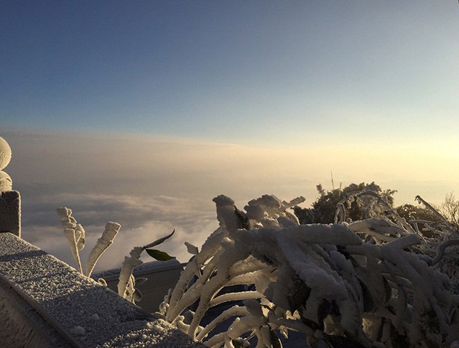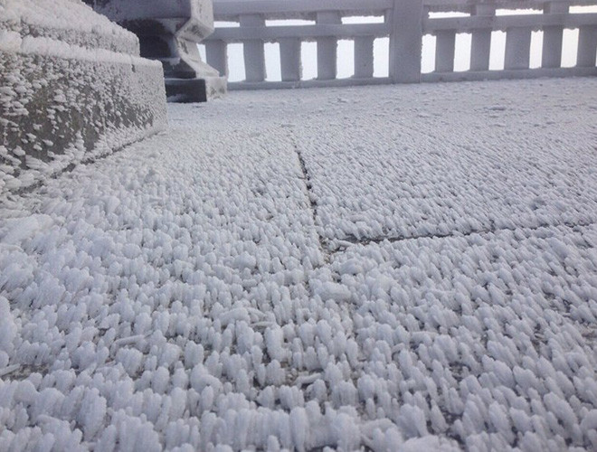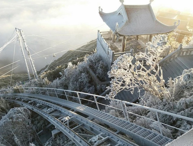 ANTD.VN - Do ảnh hưởng của không khí lạnh tăng cường nhiệt độ miền Bắc giảm sâu và xuất hiện băng tuyết tại các vùng núi cao. Đặc biệt, trên nóc nhà Đông Dương – đỉnh Fansipan xuất huyệt băng tuyết, phủ trắng mọi vật dưới đất, tạo thành một khung cảnh đẹp mắt khiến nhiều du khách thích thú. Nhiều du khách ngỡ như mình lạc vào chốn cổ tích trên đỉnh Fansipan.