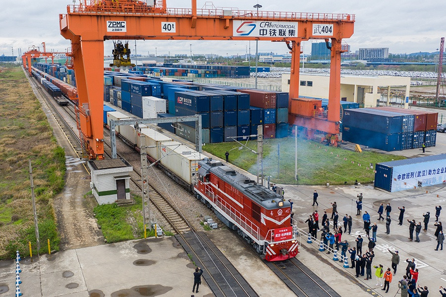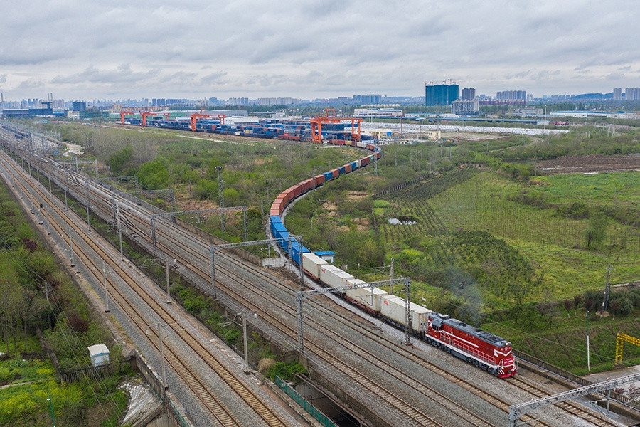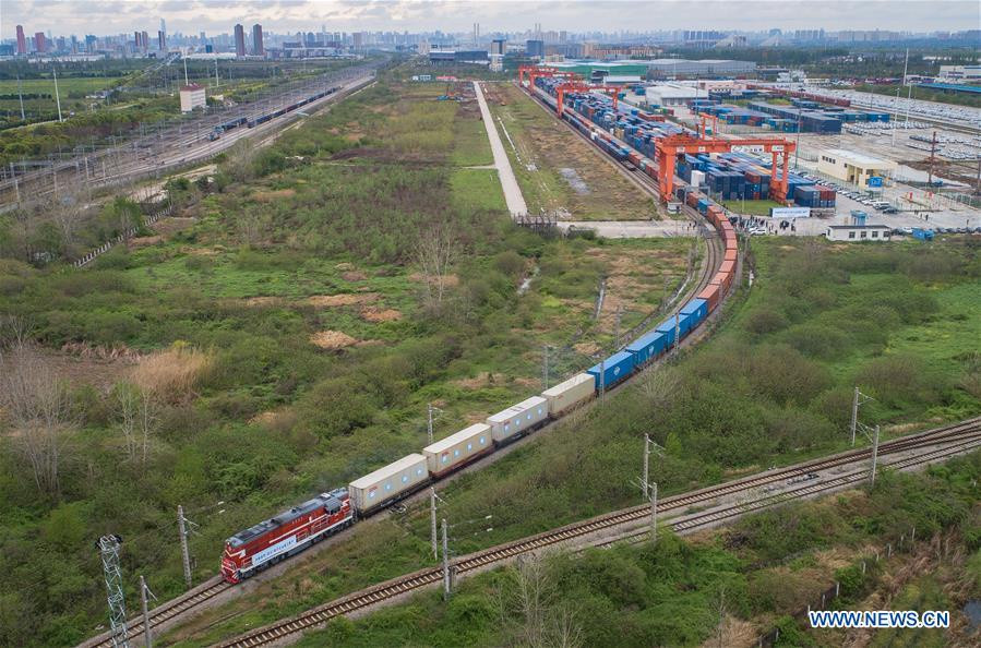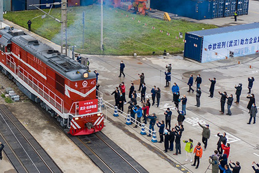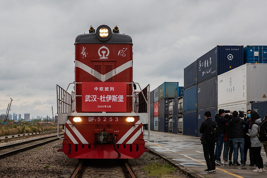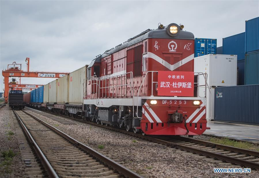 ANTD.VN - Chuyến tàu hỏa chở theo 50 container hàng hóa, trong đó có nhiều trang thiết bị y tế, xuất phát từ Vũ Hán, Trung Quốc, hướng đến châu Âu. Đây là chuyến tàu đầu tiên hoạt động tại Hồ Bắc sau 2 tháng đường sắt ngưng trệ vì đại dịch Covid-19 hoành hành.