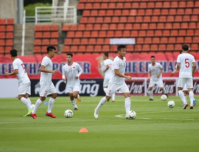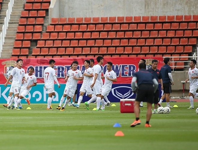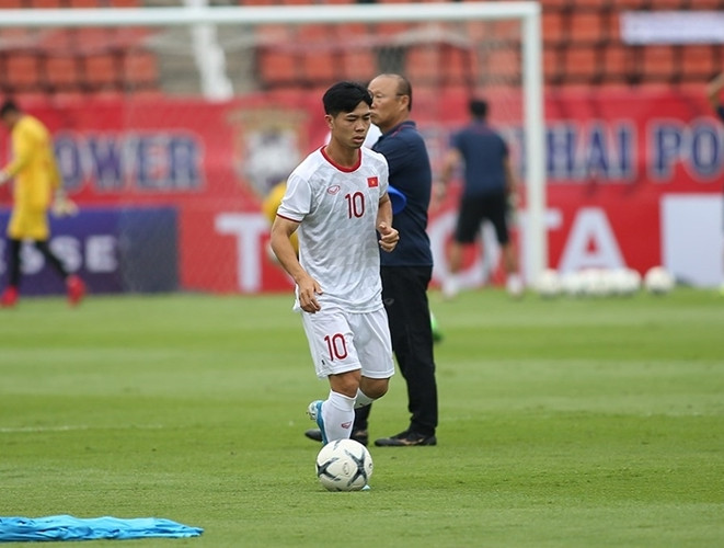 ANTD.VN - Chiều nay 4-9-2019, hậu vệ Đoàn Văn Hậu đã có buổi tập đầu tiên và duy nhất cùng ĐT Việt Nam, chuẩn bị cho trận quyết đấu với ĐT Thái Lan vào 19h tối mai trên sân Thammasat.