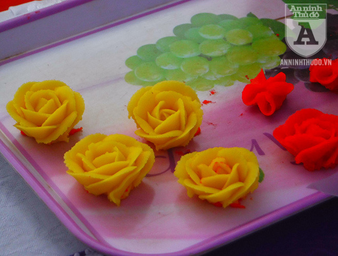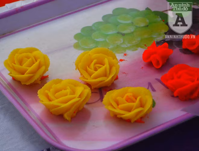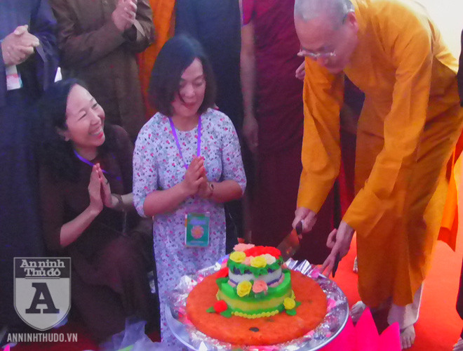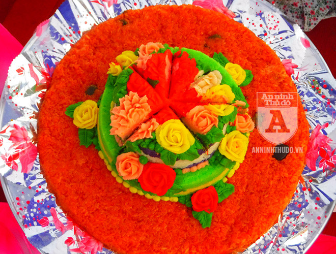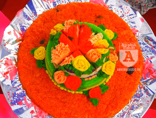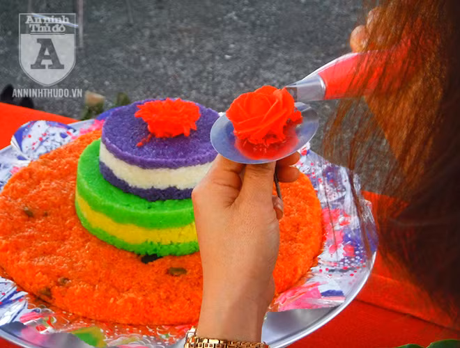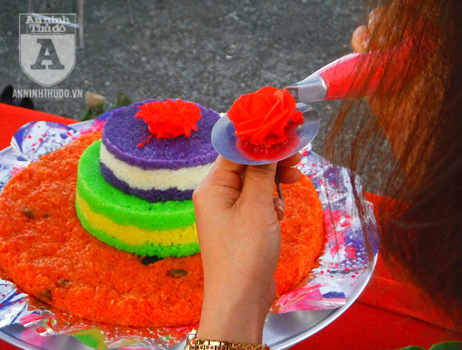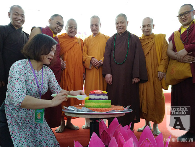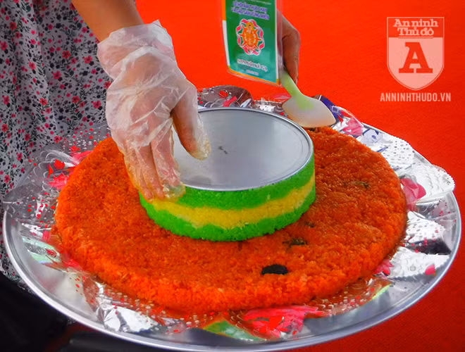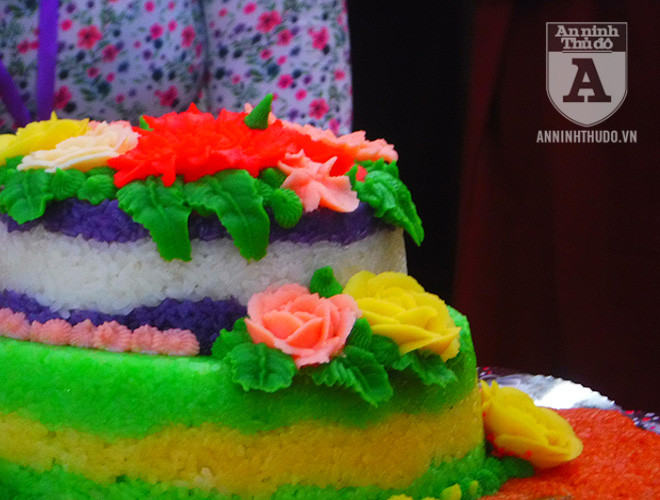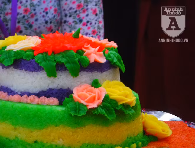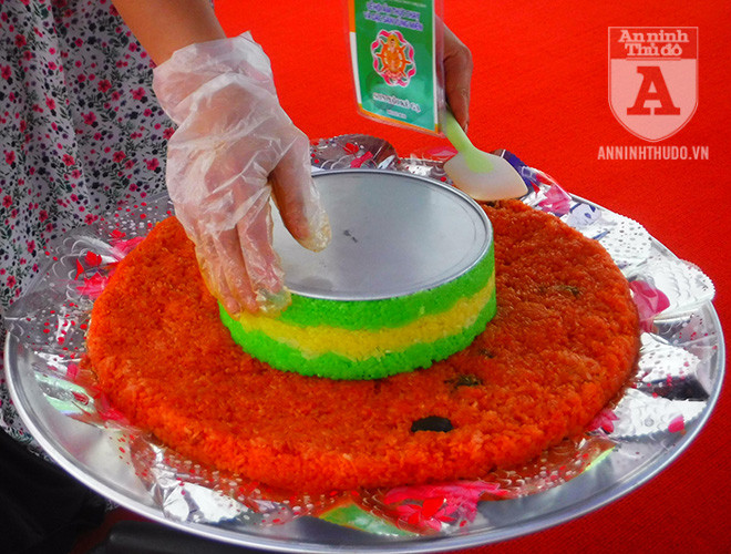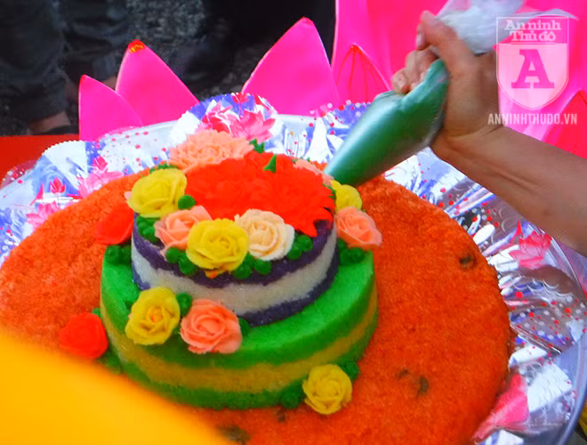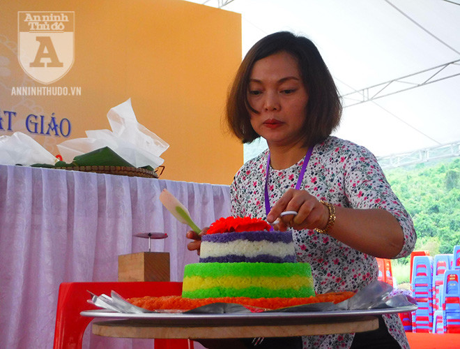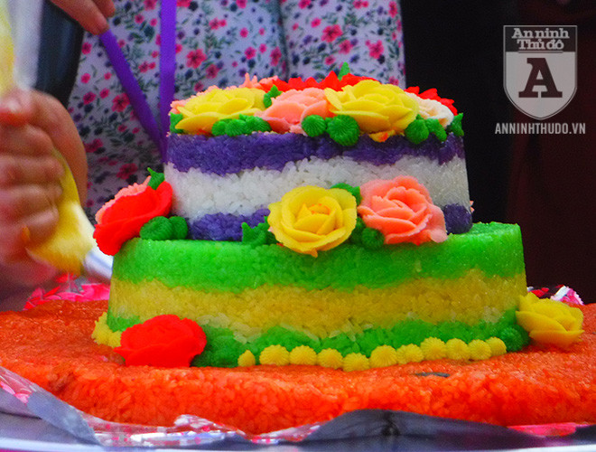 ANTD.VN - Trước ngày khai mạc Đại lễ Phật đản Liên Hợp Quốc - Vesak 2019, tại Hội chợ Ẩm thực và Văn hóa phẩm Phật giáo (Chùa Tam Chúc, Hà Nam) đã diễn ra màn trình diễn nghệ thuật làm xôi hoa đậu ngũ sắc 3D độc đáo. Xôi có 5 màu, hoàn toàn làm từ thực phẩm tự nhiên (gấc, nghệ, đậu...), tượng trưng cho 5 yếu tố của ngũ hành, 3 tầng xôi hình tròn tượng trưng cho sự tròn vẹn của trời và đất.